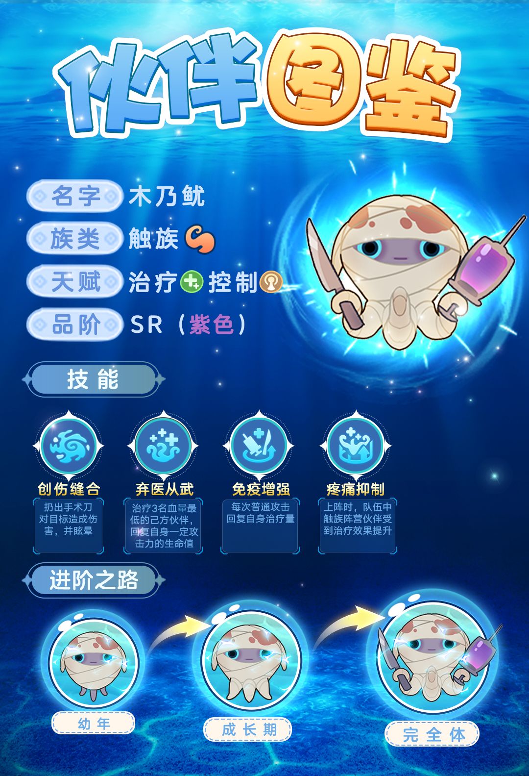 “在海底世界有一位特别又奇怪的医生,他浑身裹满绷带,只要有受伤和生病的地方,它都会出现!”