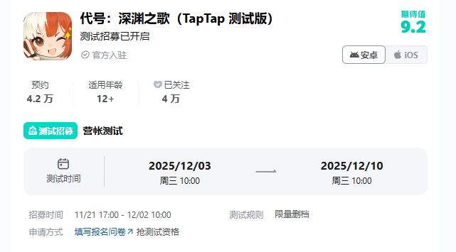 代号:深渊之歌(TapTap 测试版) - 安卓官方预约 - TapTap