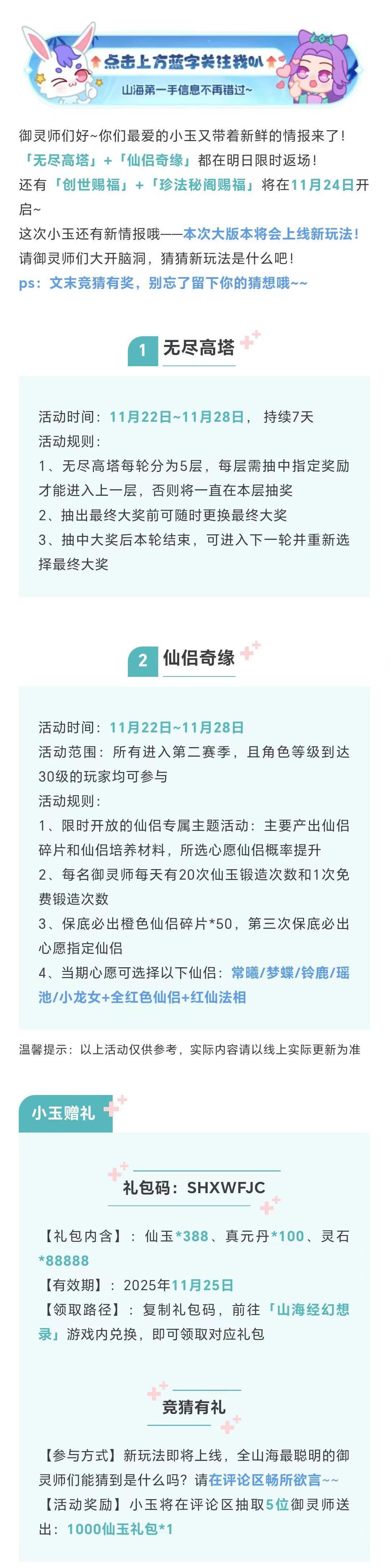 活动预告 | 无尽高塔、红色仙侣返场~参与竞猜赢仙玉大礼!