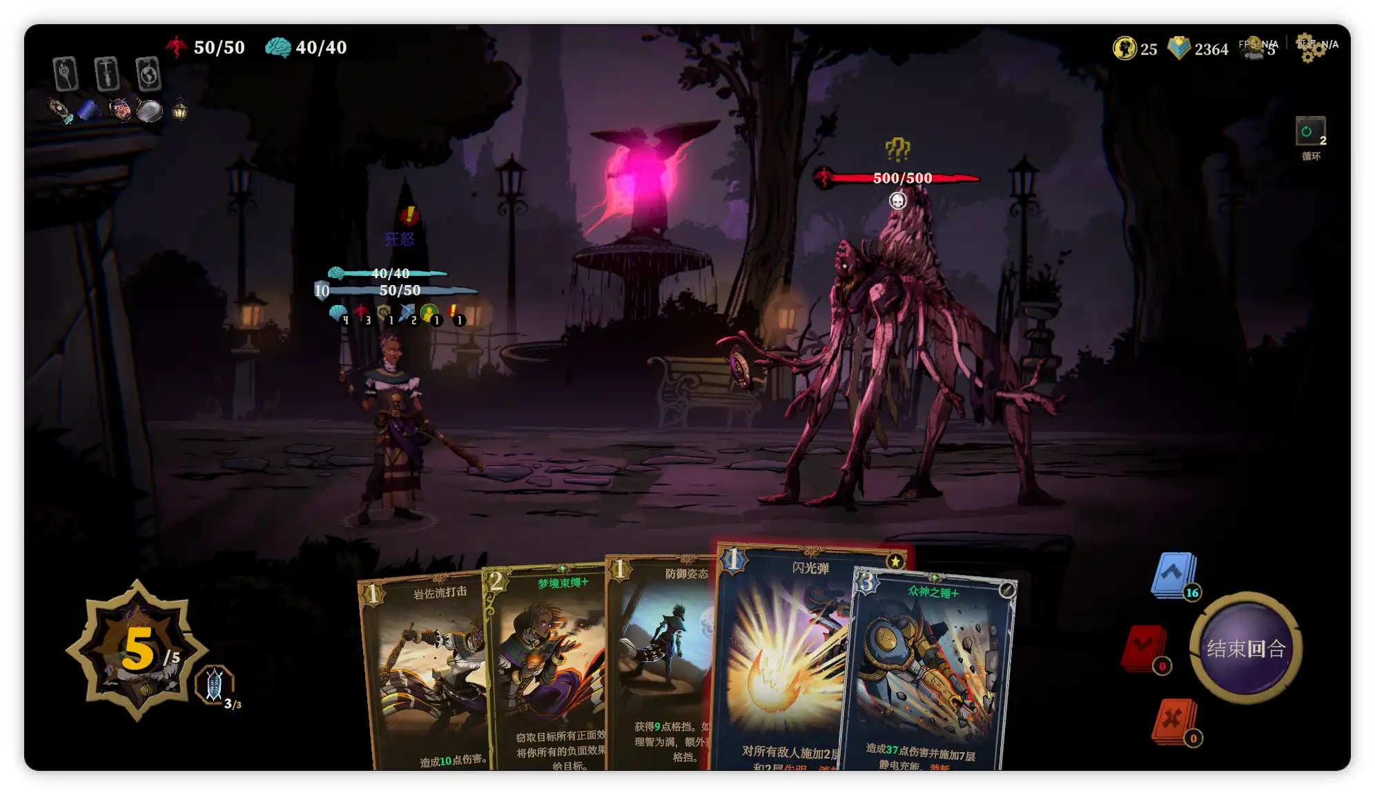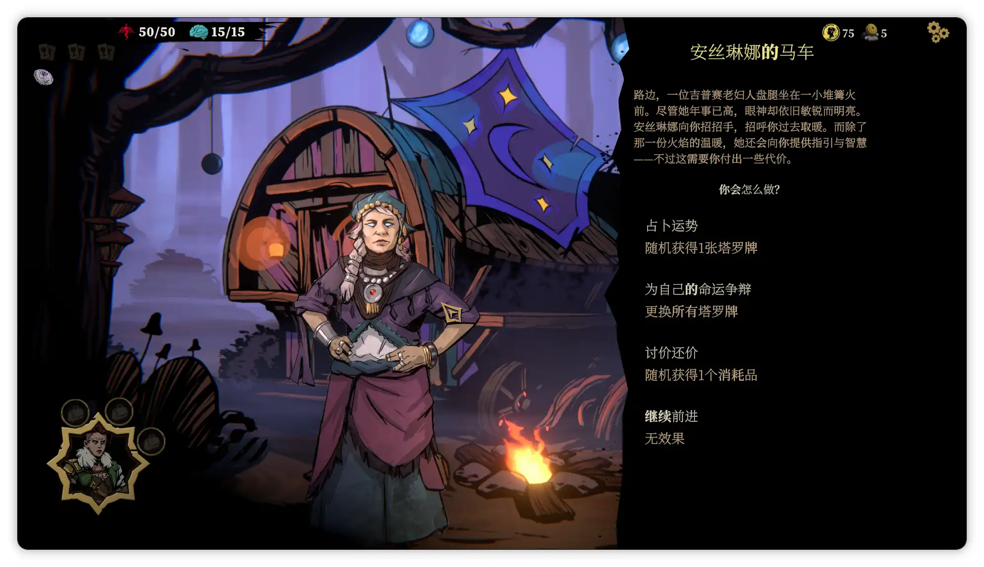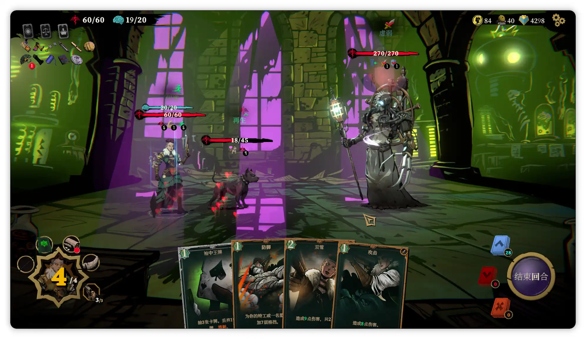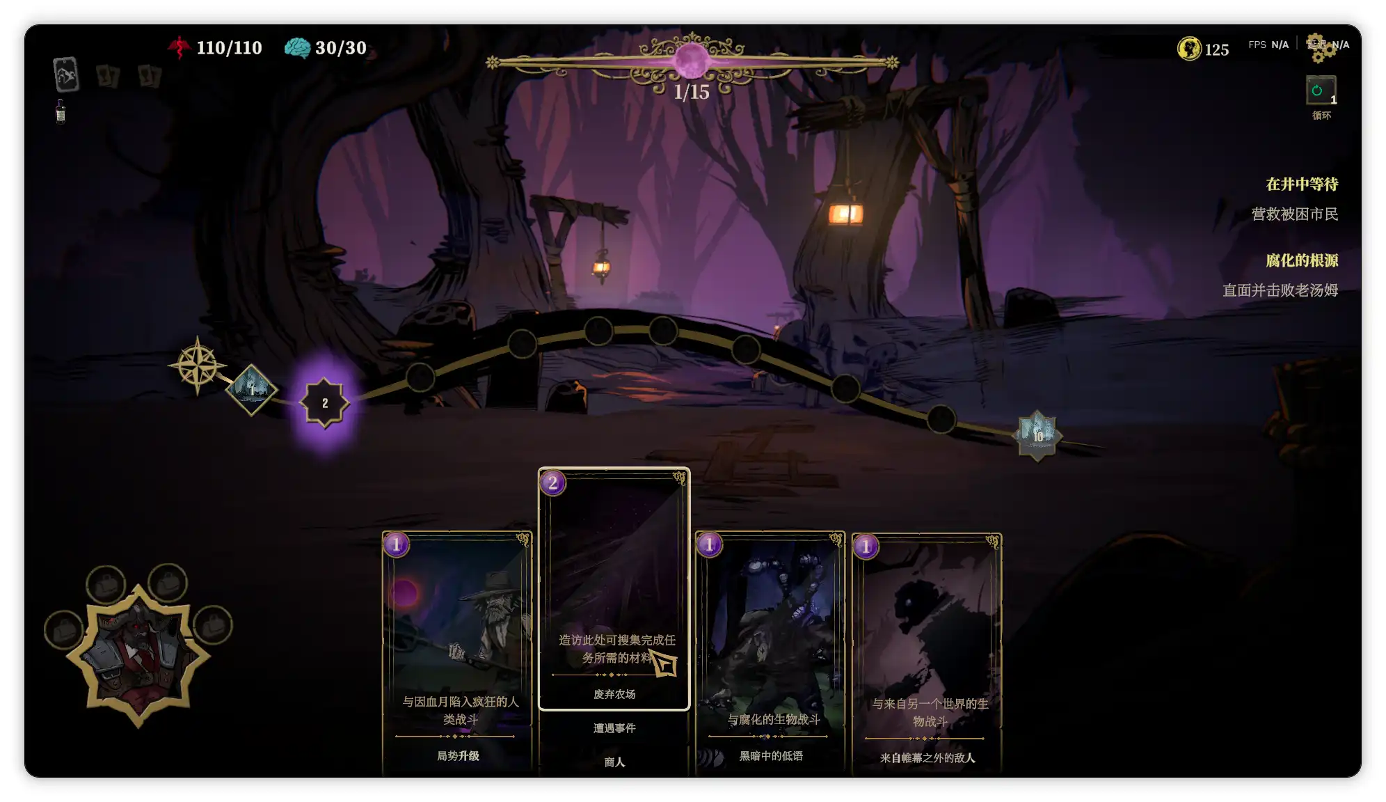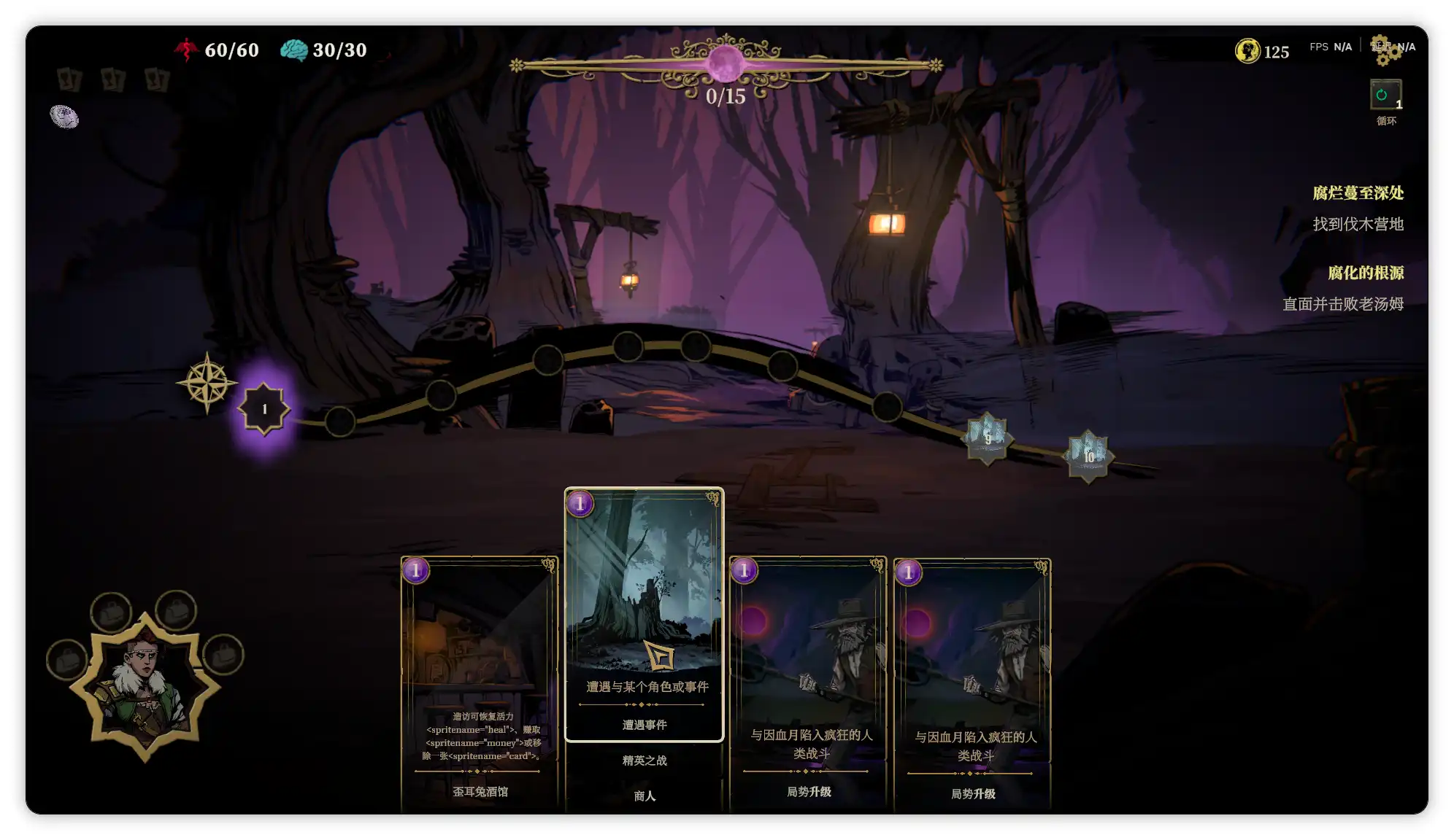 除了常规的打怪外还有许多特殊事件,其中遭遇与某个角色或事件可以根据不同选项获得增减益效果,游戏中的活力值就是血条,而理智某种程度也算血条,选择某些遭遇的事件选项或者被腐化怪物特殊攻击后都会降低理智值,可以理解为掉san值,要注意活力和理智任意一个归零都会导致游戏任务失败。