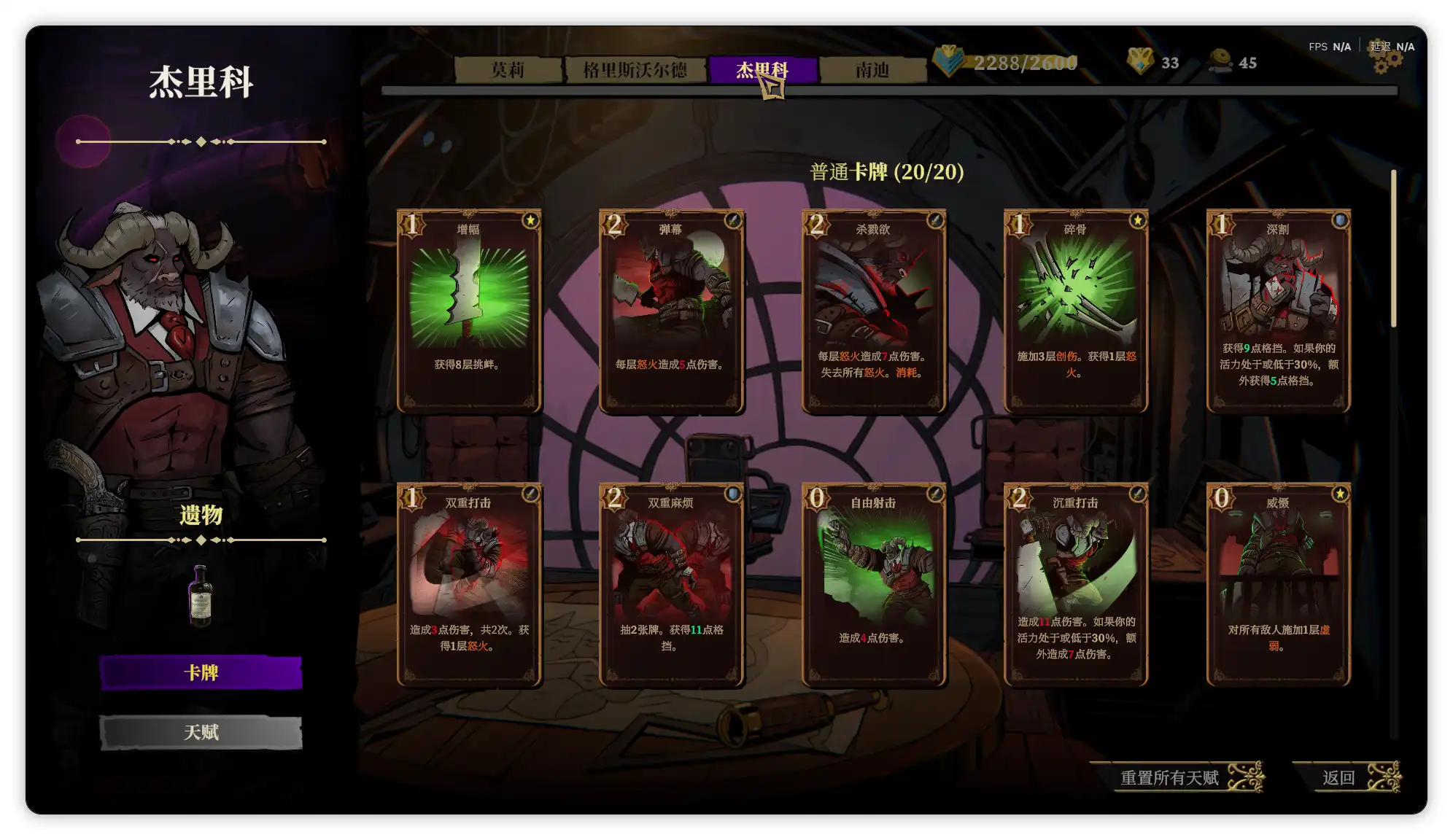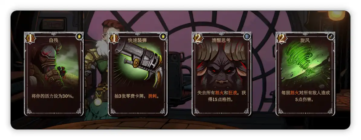 杰里科的初始遗物是复苏酊剂(战斗结束时,恢复6点活力。)卡牌构筑包括回复或者吸取活力、挨打增加力量(力量越高伤害越高)以及活力越少伤害越高,还有敌方活力低于20%造成999点伤害的斩杀技,这使得牛头人整体的定位类似于各种世界观中的狂战士,喜欢莽的玩家不在少数,选它绝对舒服。