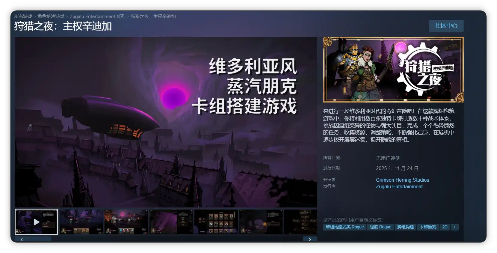 《杀戮尖塔2》还不出吗!!!!!!!我先来试试这款蒸汽朋克风的《狩猎之夜:主权辛迪加》,据说也能通宵爽玩根本停不下来!
