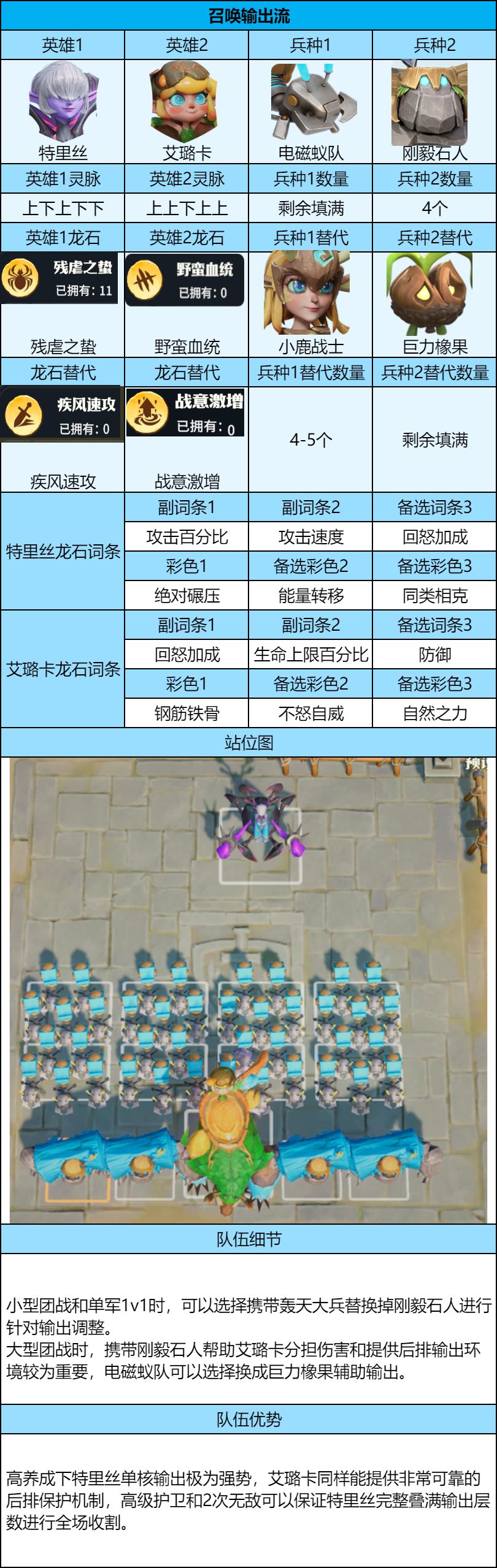 1、高养成下尽量保持2-3队保持极高的单军作战强度,进行冲锋开路,后续队伍均衡养成保证同时具备单军和团战能力。