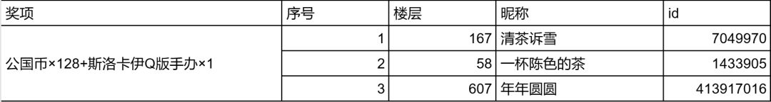 奖项:公国币×328+斯洛卡伊Q版手办×1