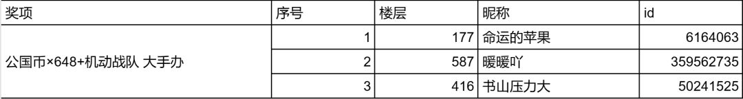 当本帖楼层数大于30后,随机抽取3位指挥官,送出一份【公国币X68】奖励,当楼层数陆续解锁后,将不断追加抽取名额和奖励,详情如下: