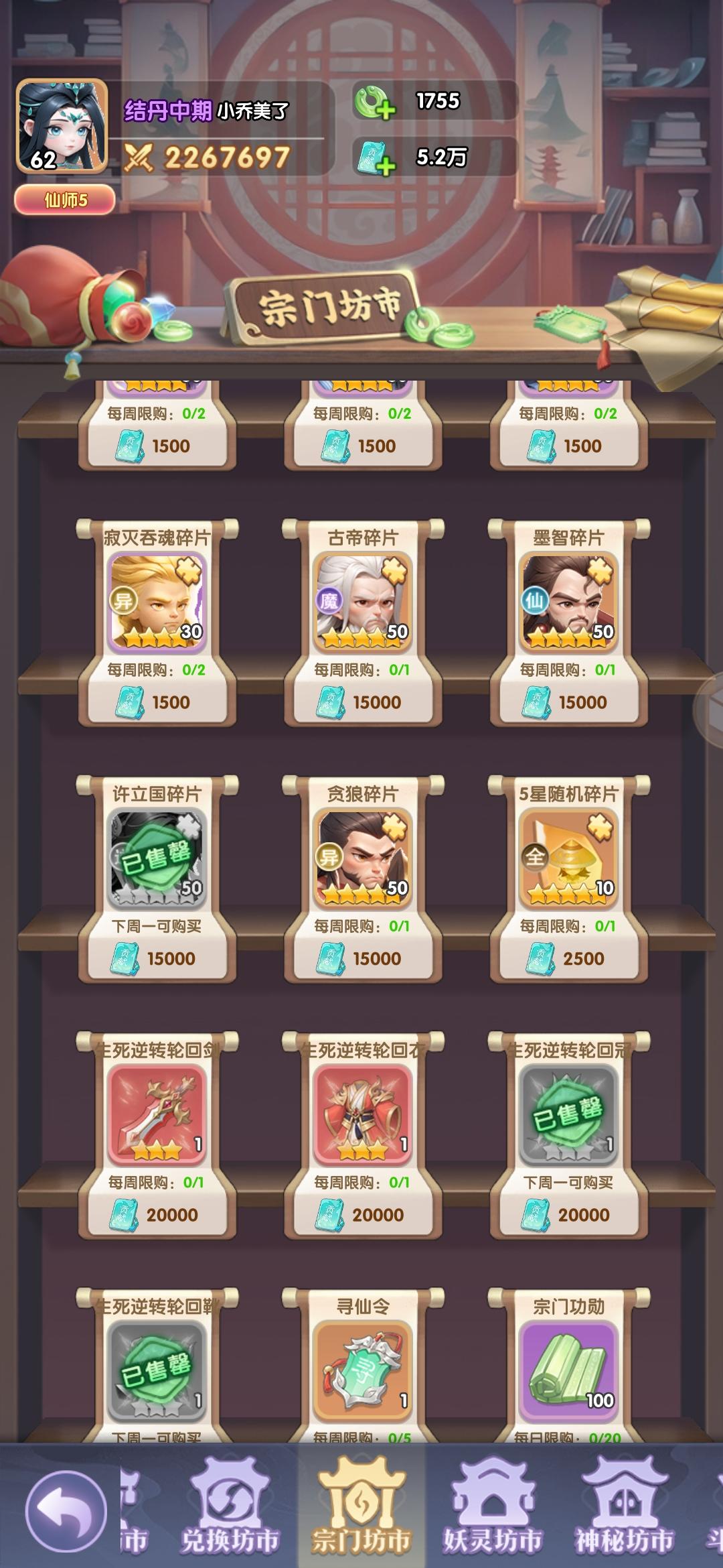 探秘获得的积分,可以在妖灵坊市,刷新兑换修士,妖灵坊市里不能刷到马良藤一王林拓森,其他修士都可以,核心卡10000积分,神品8000积分。