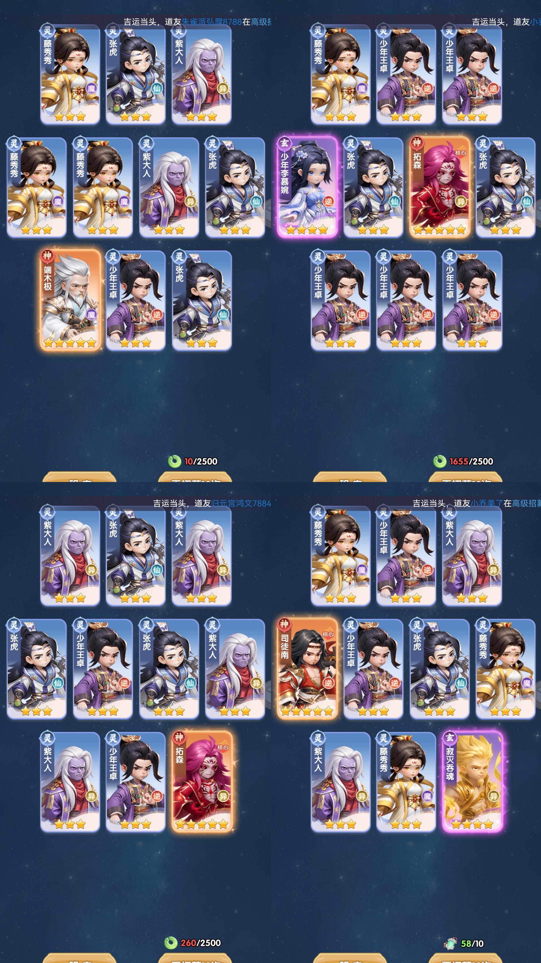 1.前期大家缺本体、狗粮卡、进阶丹。不要考虑阵容问题,哪个卡可以升高星,就升那个修士上阵,在后面慢慢调整阵容,前期要保留自己需要修士本体,不要作为狗粮吃了。