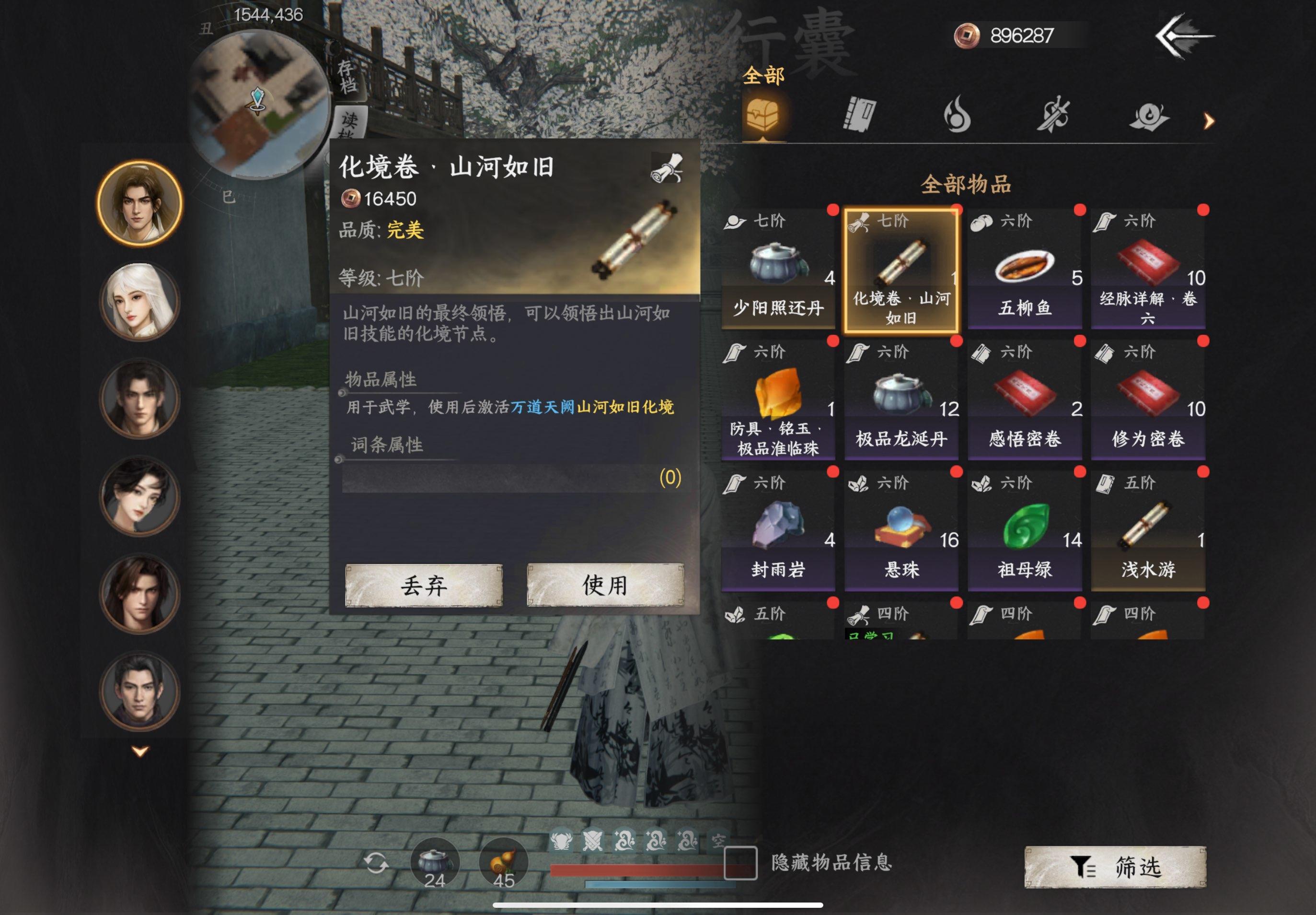 11.(365,855)获取斜风细雨剑,只用学风行剑,(1541,439)获取陵上柏化境卷,(1293,616)获取牛金牛化境卷,(901,818)获取风行剑化境卷,(902,817)获取纵横八荒化境卷,纵横策的获取接着往后看,现在打不过,先刷了化境卷省得来回跑。爆以上化境卷都是野怪,随便打