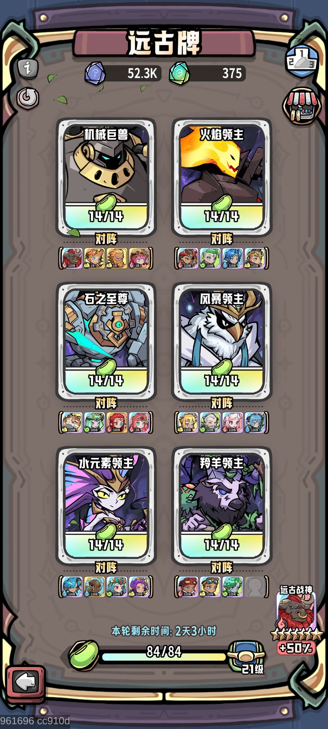 80w+战力两期远古84豆毕业阵容分享
