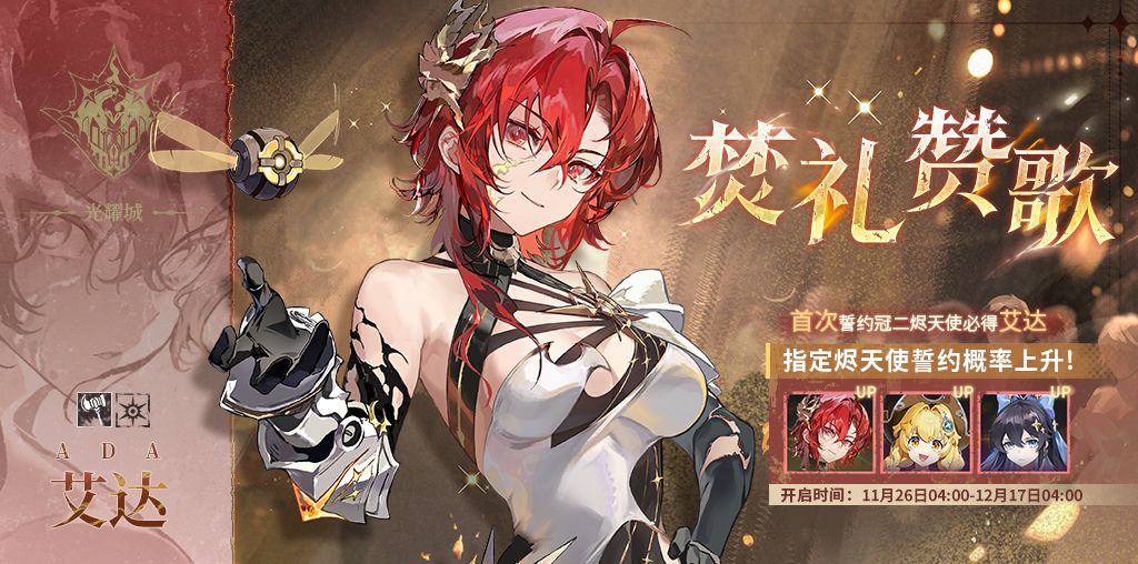 誓约说明:活动期间「焚礼赞歌」限时誓约开启,该誓约中以下烬天使获得概率提升: