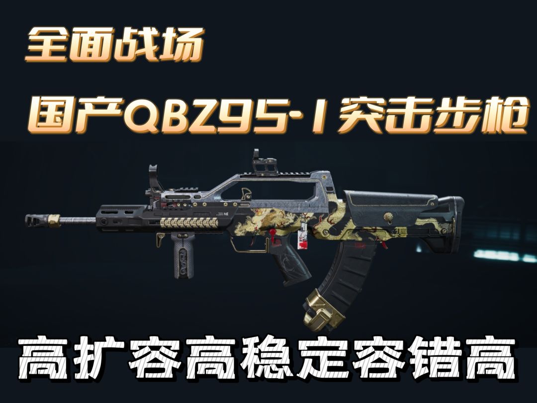 今天我给大家带来一把国产的突击步枪——QBZ95—1突击步枪,同时这把枪也是全面战场中解锁干员档案过程中的一把枪,废话不多说咱们来看看裸枪数据:基础伤害22、优势射程40米、后坐力控制52、操控速度55、据枪稳定性58、腰际射击精准度54、射速679发/分。从裸枪数据上看这把枪的数据非常均衡,唯一不足的是射速略慢,那么我来给大家带来这把枪的改枪方案以及改枪思路吧。