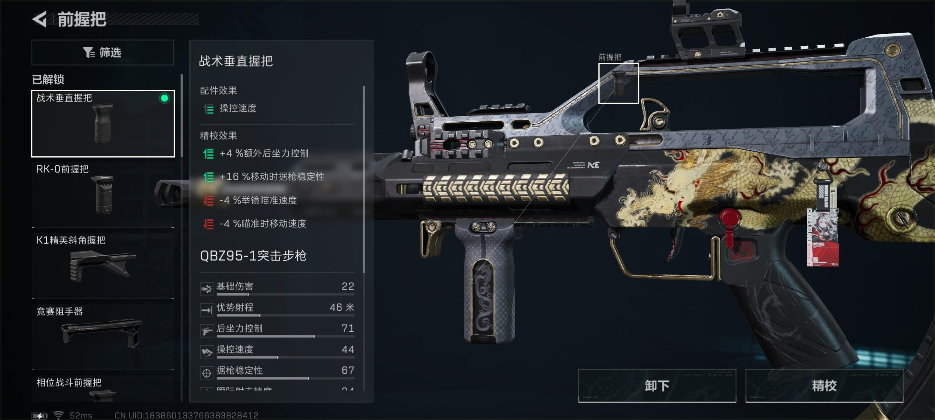枪管、前握把、后握把、托腮板的精校全部向右拉满,在枪械拥有良好的操控速度情况下,再次对枪械提升枪械稳定性能够在实战中压强更稳。下面是靶场测试以及实战测试:
