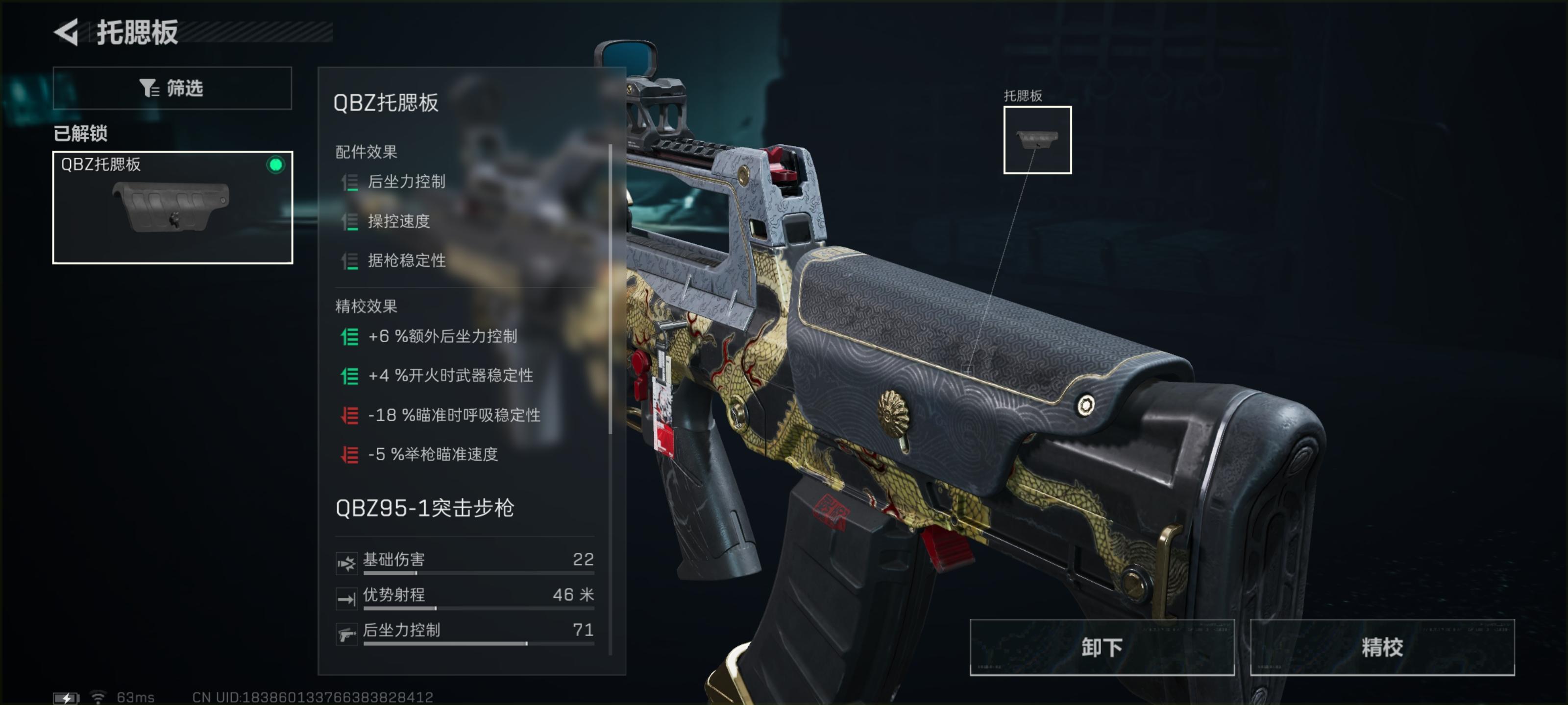 枪托选择QBZ托腮板。在没有任何负面属性的情况下小幅度提升枪械后坐力控制、操控速度以及据枪稳定性。接下来是枪械精校: