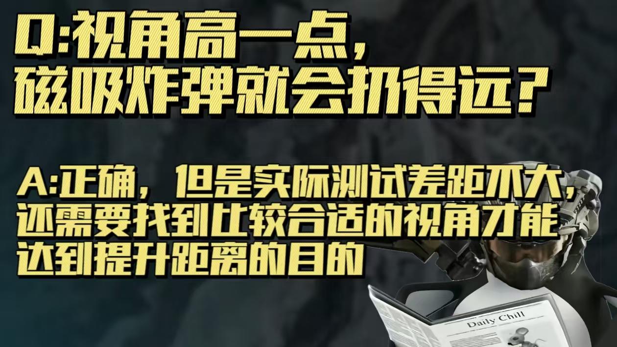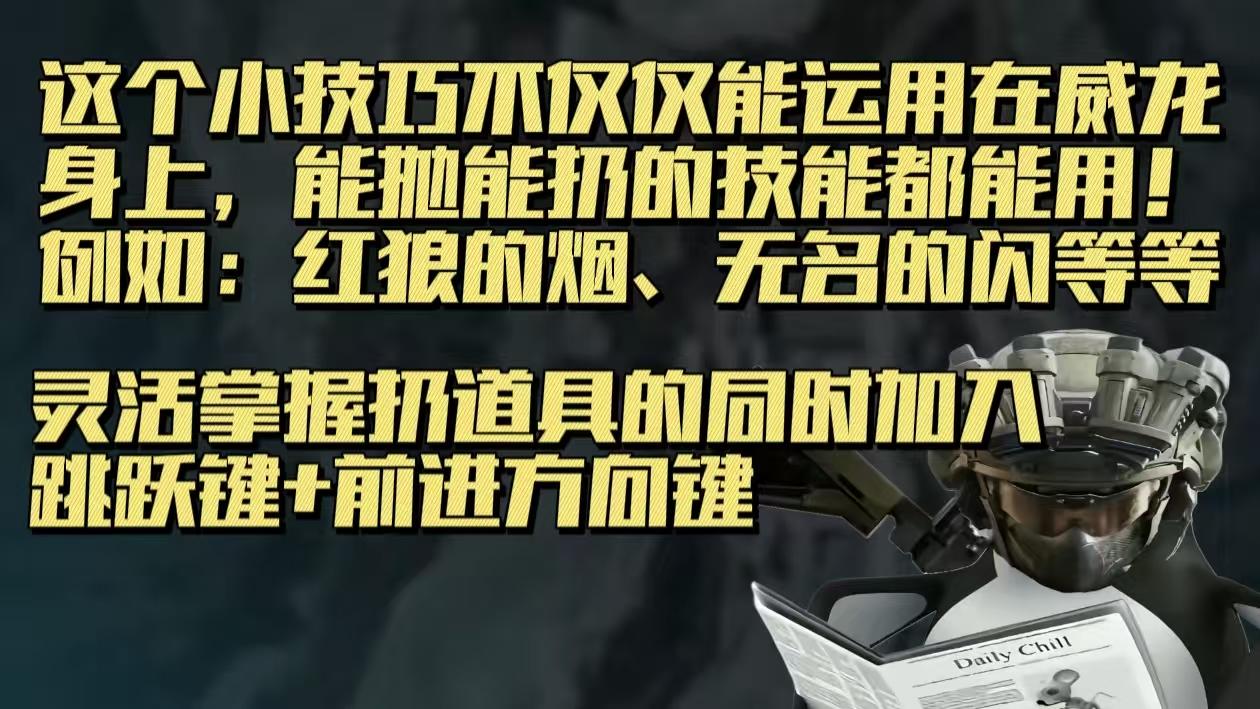 各位彦祖亦菲大家好,我是你们的老朋友兔桑!欢迎大家收看本期的玩法攻略之“威龙磁吸炸弹竟然还能扔得这么远”(依旧长难句起手)——你的威龙扔出的磁吸炸弹距离是不是非常的近,把视角抬得老高却总也抛不到合适的位置?又或者因为磁吸炸弹的技能范围较小限制了你自己的发挥?不要慌,学会这一期端游手游通用的“高雅磁吸炸弹”就能轻松突破普通磁吸炸弹的上限,让你秒变队友都崇拜的“高雅威龙”。