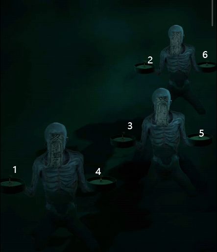 6、左边有三个死尸手上都有蜡烛,根据《天地鉴隐录》记载的顺序使用三炷香点燃魂灯,桥被修好。