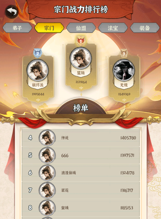 排名依据:以玩家拥有的单个弟子最高战力值为准,彰显弟子培养的深度与品质。