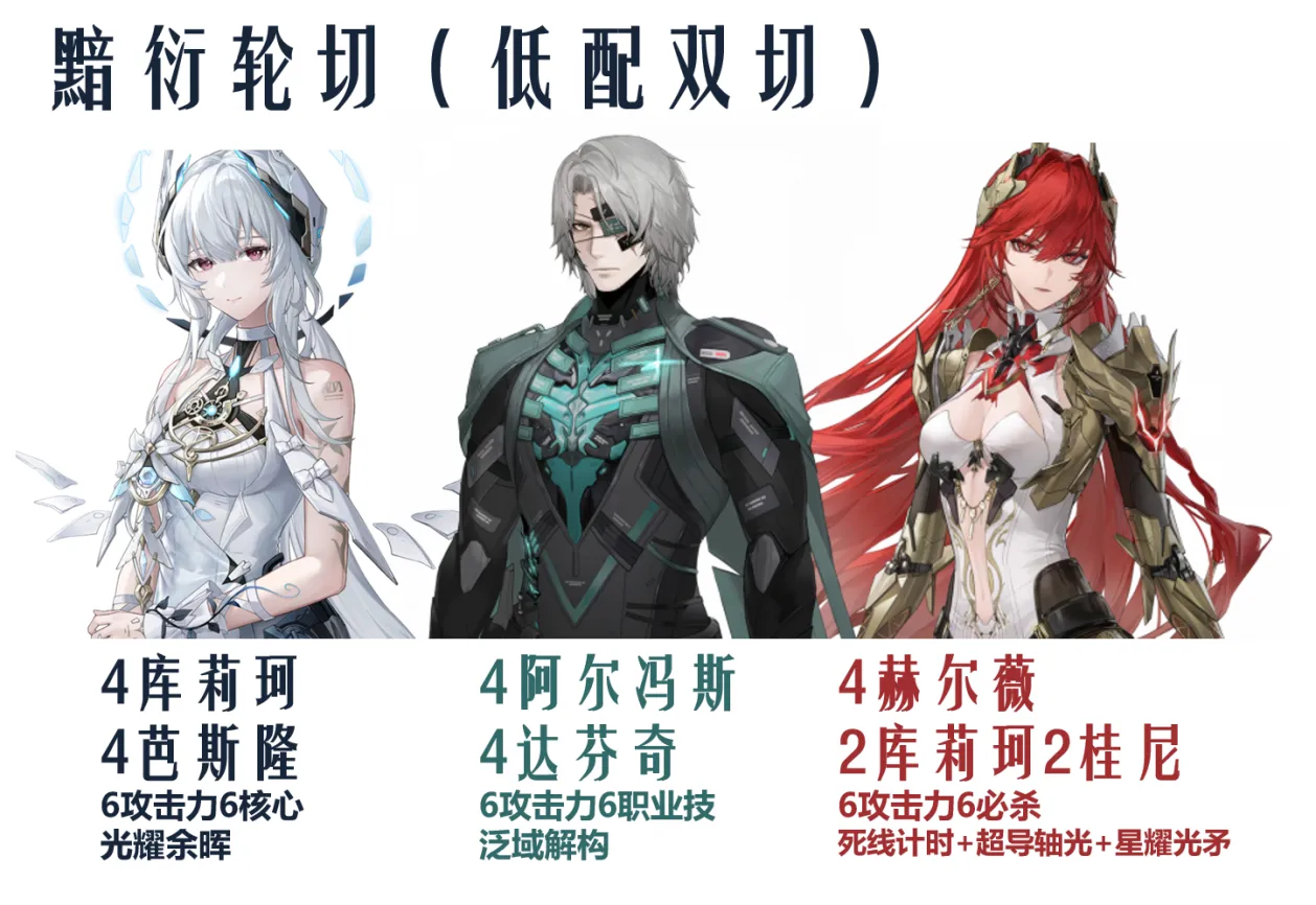鏖战的话,则是霁梦带4库莉珂4庞加莱,灼惘带4芭斯隆4桂尼,但是鏖战门槛较高,本期还是聚焦战区。