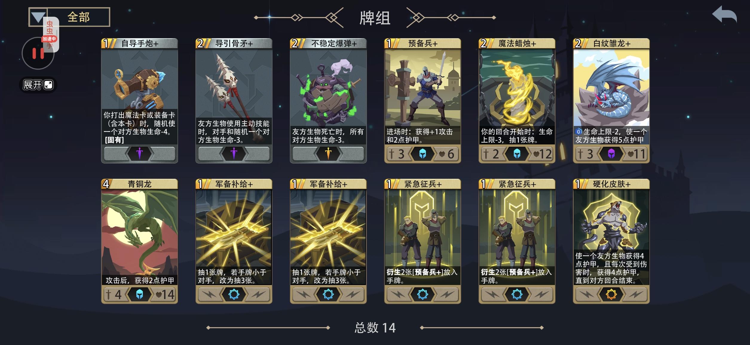 ◇速通:初始牌组自带的『决斗』、『硬化皮肤』可以转化掉,装备封印也可以多留抽牌的装备,尽量降低找牌压力。在‘删牌’的过程中基本都能拿到一两张魔法卡,然后将魔法卡转化到自己想要的,这样进入第三层的时候,牌组基本成型了