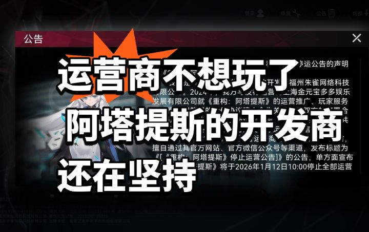 《重构:阿塔提斯》的开发商朱雀网络已于近日发布信息,对游戏此前发布的停运公告进行解释