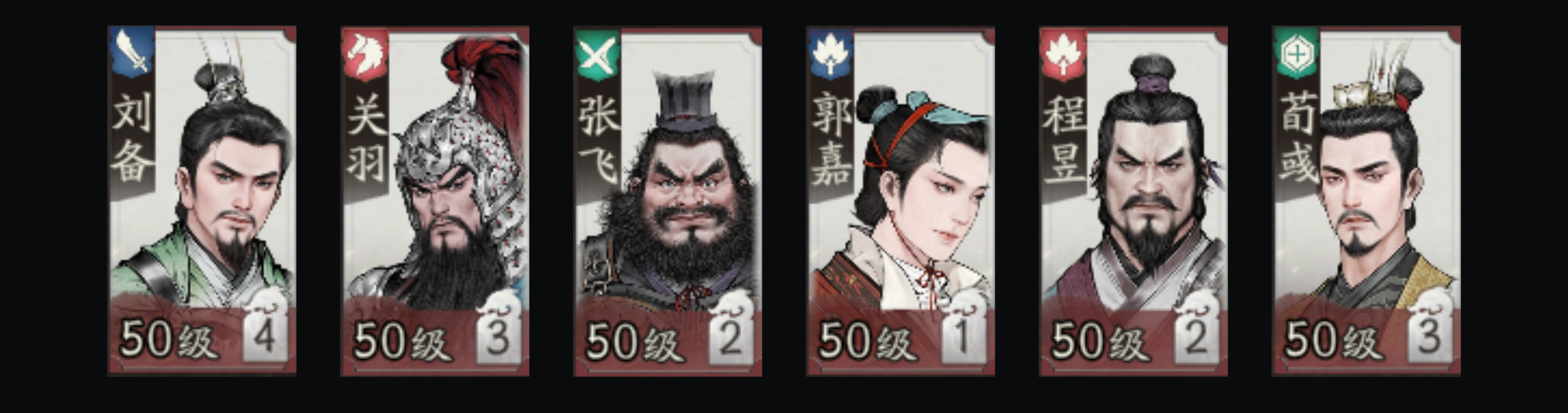 刘备、关羽、张飞、郭嘉、程昱、荀彧