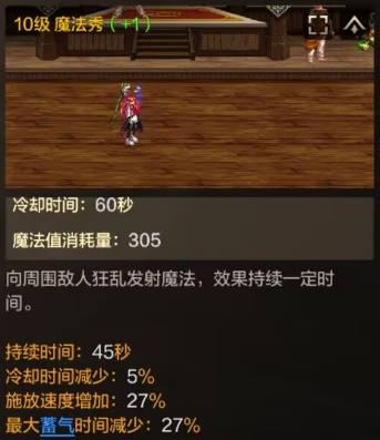魔法秀这个技能在70版本是元素必须加满的buff技能,70版本元素改版后,所有主动技能都增加了蓄力效果,魔法秀点满后可以大幅提升元素的输出手感,所以必须点满