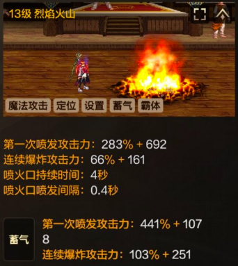 其中烈焰冲击是起手技能,虚无之球和烈焰火山是压制类技能,这两类技能一般只需要点1级即可,但是烈焰火山还可以打收招伤害,所以烈焰火山可以点满
