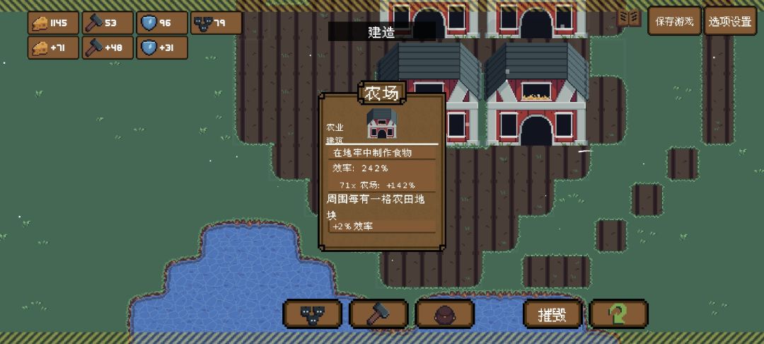 拆除建筑实际会返还全部建造资源,但是建筑数量会增加下一个同类建筑的建材需求(道路和展示台不会增加),所以实际不用担心拆建筑会吞你资源。农场和采石场都会无视它们底下的田地/石头,但不会无视其他农场底下的田地,所以你只需要找个很大概率用不上的地方,铺上对应的地板,然后“合理密植”的让他们挨近点就行了。