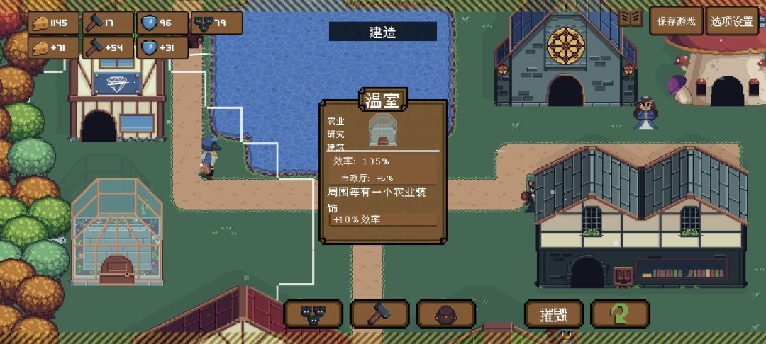 在市政厅能直接打开所有连接成功的研究建筑,加的效率,除了有产出的会增产点,研究要的资源也会减少(然而并没有什么卵用,因为拉满效率也减不到零支出)。然后就是市政厅的连接,有两个方式,一个是两个建筑之间的范围彼此重叠,一个是在市政厅范围内的道路经过其他建筑范围的边框。但是实际好用是打开面板,增加效率的功能真的很鸡肋。
