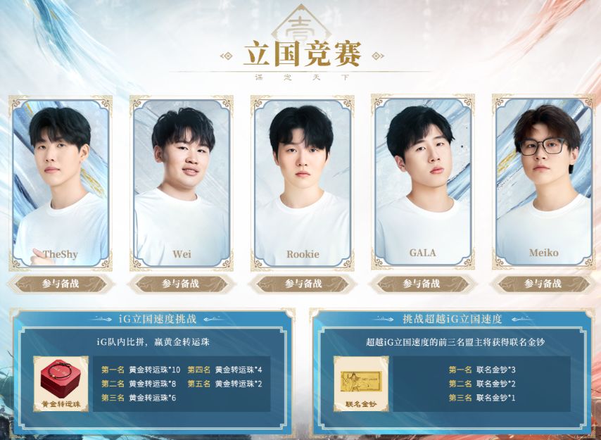活动一:立国竞速赢金钞,同台竞技战iG