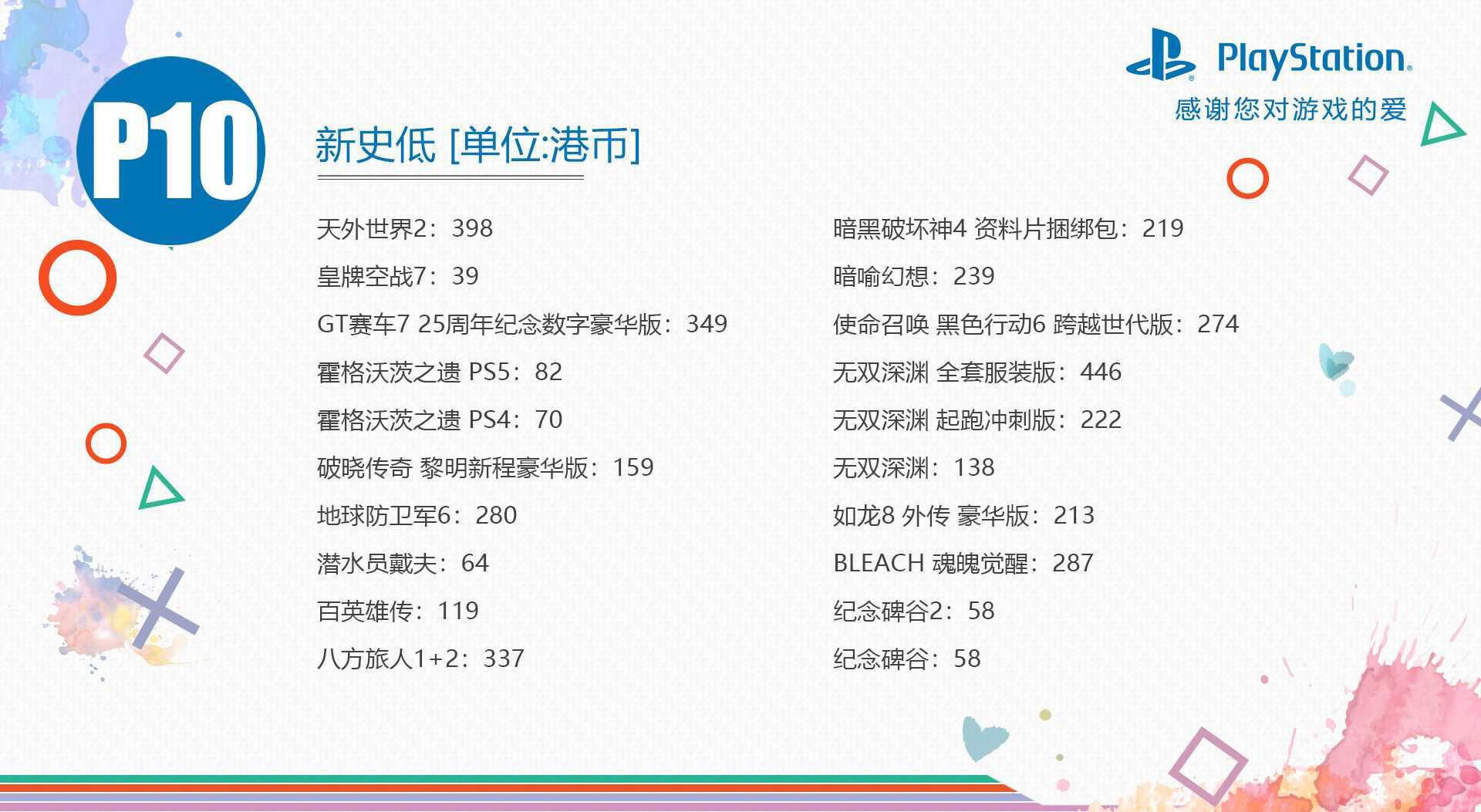 《BLEACH 魂魄觉醒 》,现新史低,287港币。作为一名死神粉,今年首发我就入手了。算是一部比较传统的粉丝向游戏。加上这个IP很久没出主机游戏。如果你看过死神这部动漫,建议还是买二手盘更划算。