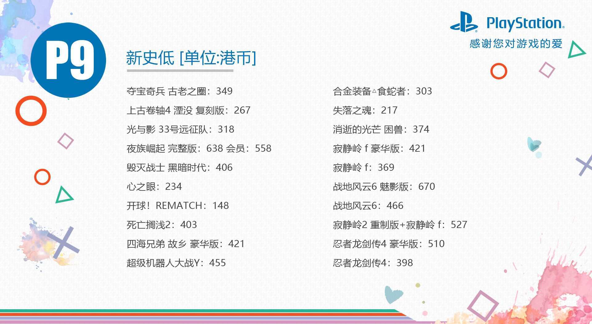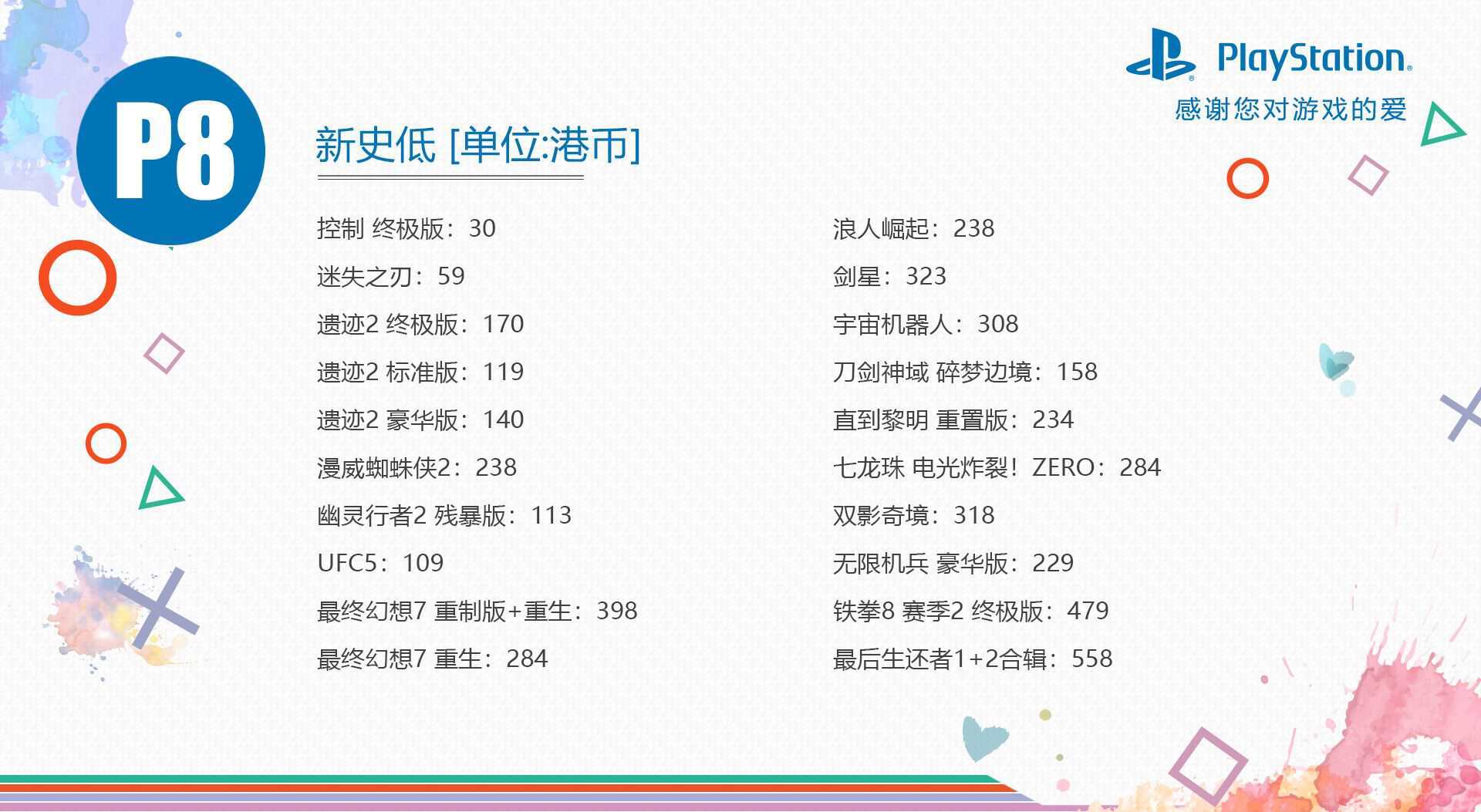 《暗喻幻想》,现新史低,239港币。游戏刚发售一个多月,因为供货量大,实体盘早早就跌破至200。之前没玩过”女神异闻录“系列的玩家,倒是可以尝试一下。简化了玩法,算是一款比较王道的JRPG。购买二手实体盘更划算。