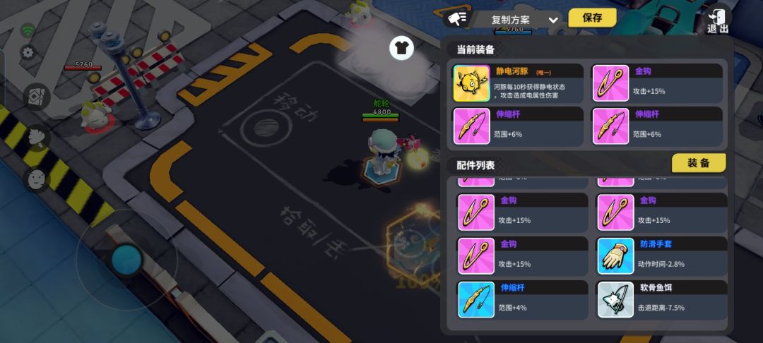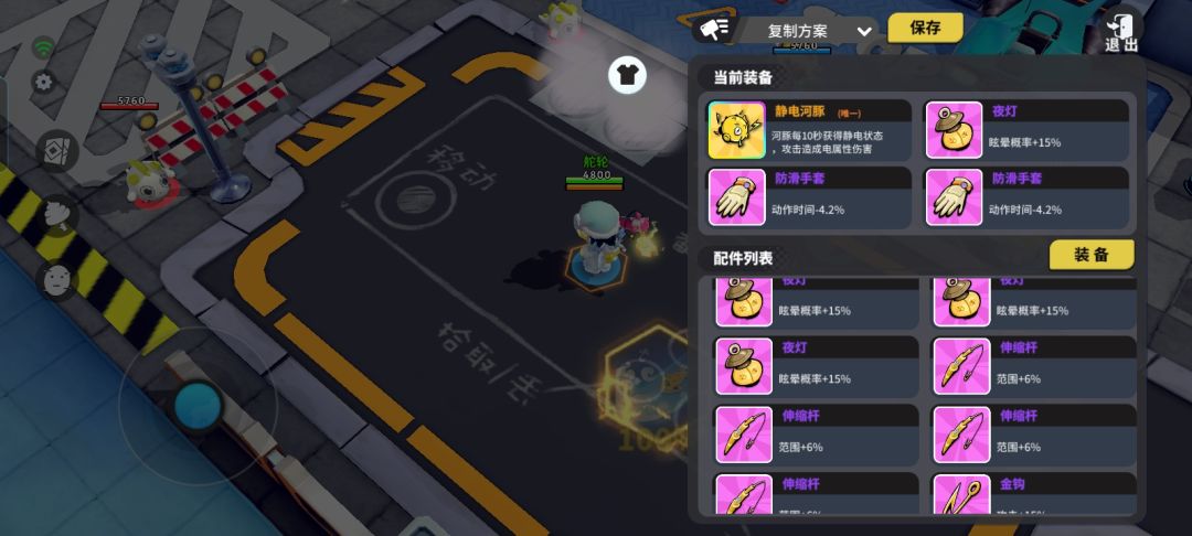 评价:此搭配的想法用最大的电范围范围让敌人掉落物器,然后慢慢的磨死敌人,此搭配适合低伤害的角色使用