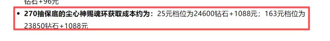 不过说到底大家最关心的肯定还是宁荣荣的神赐魂环......270抽保底,说实话当维一第一眼看到这个270抽保底的时候,我立刻就想到了尘心的神赐魂环,因为那一拨白沉香通行证里边,尘心神赐魂环刚好也是270抽保底,而且这个成本极为夸张......