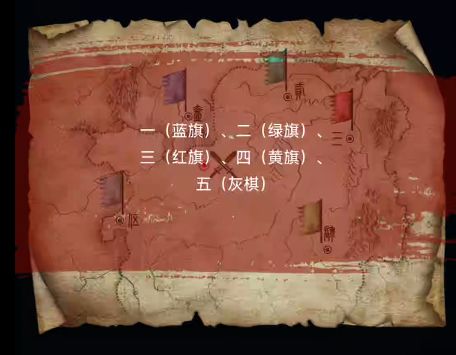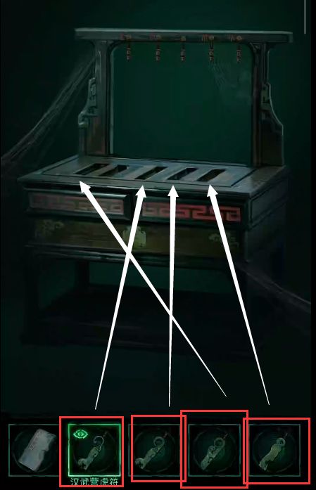 7、进入左边的房间,右边的箱子获得4个虎符,根据左边旗帜的上的图案和架子上的序号,把获得的虎符分别放入3415的格子中,获得七星破阵图。