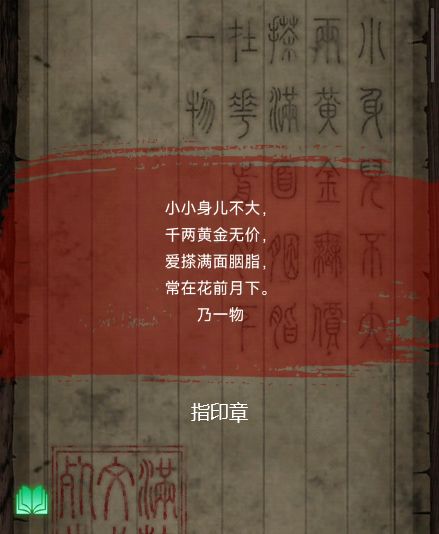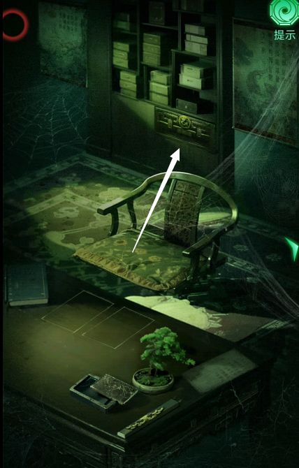 2、通过解开字谜获得“卜、日、印章”,以此打开书柜下的密码锁,看见一把扇子,扇子上有四个字,使用毛笔点击书案上的空白灯笼,桌上出现四字密码锁,根据扇子的文字点击密码,看见一张布防图。