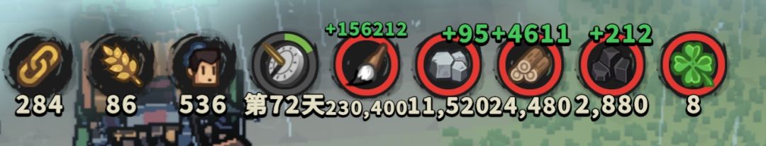 局内是第73天结束的,这把是真的肥,buff也很好,墨转石+25%乌。然后惊蛰图的乌很多又加25%,即便少采一处也有200+。那处因为和贸易码头位置冲突,就舍弃掉了。
