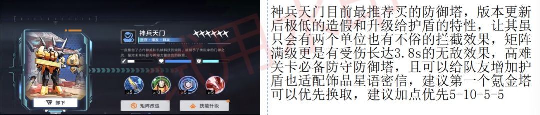 建议优先练前面五个,然后至于第一个橙塔要买什么的话,我个人的建议是优先买神兵天门,本身的话升级有护盾,而且面板较高,并且可以给角色提供护盾蹭饰品星语,至于后续的就是看个人喜好,虫塔目前泛用性最广,红色机枪对空伤害高,光棱是裂隙和禁区必不可少,如果有协会等讨伐方面的要求可以练一个辉光之萼