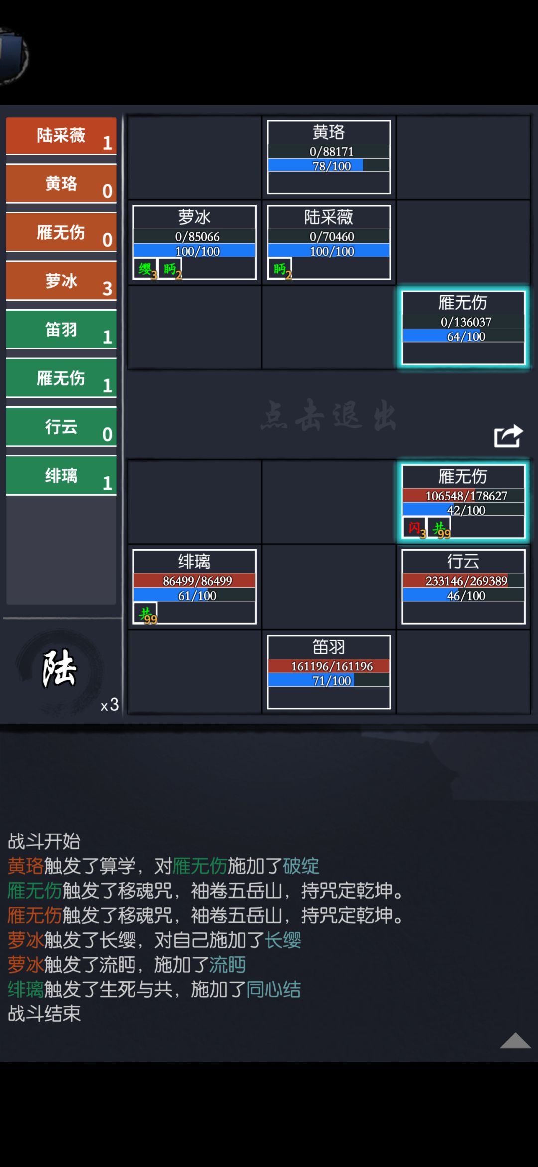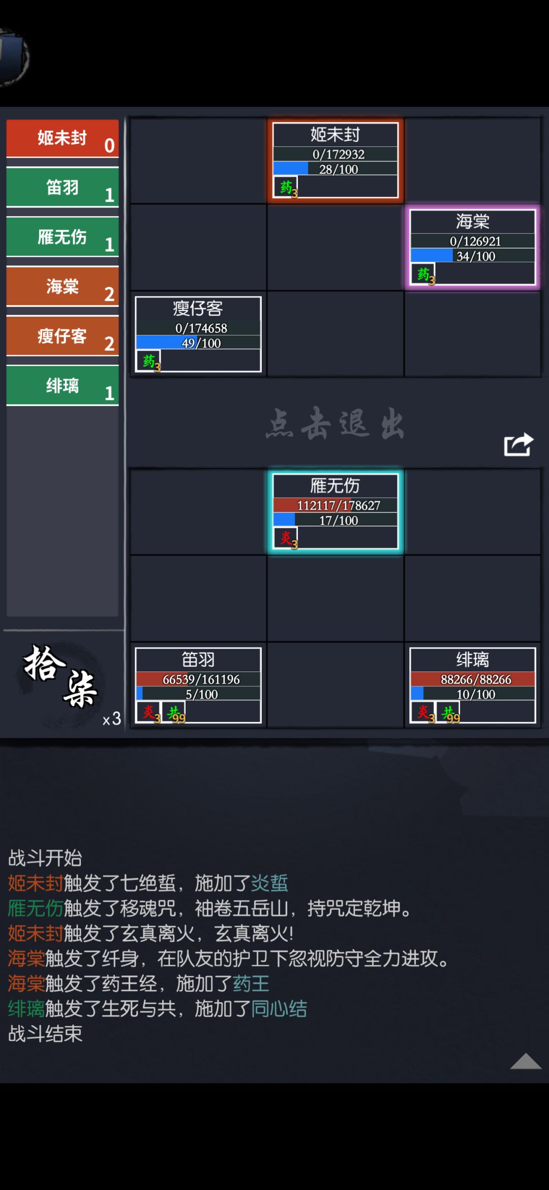 上面图都是1技能下的截图,搭配狄、行云在多人阵,抛砖引玉,可以拓展一些变化。其特殊性在于,慢节奏强对抗。其他慢节奏的侠客还没C起来就往往暴毙(或者需要大量辅助),风3就要求低很多,活下去更容易,之后的机制很强大予以斩杀。
