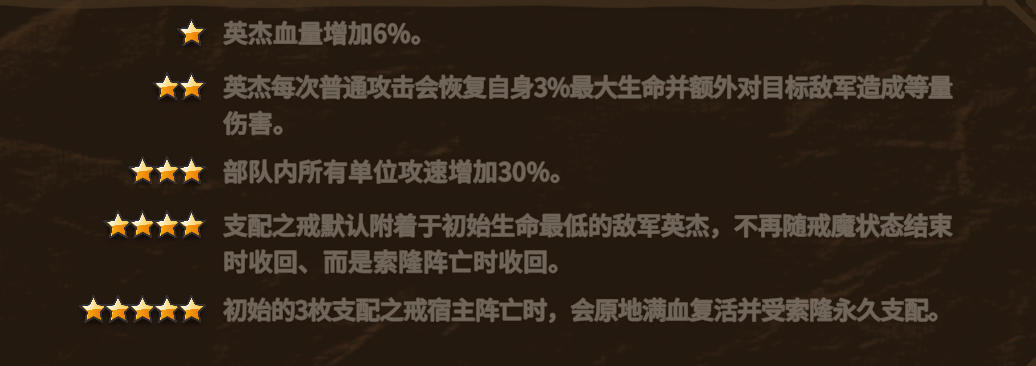 2️⃣ 圣物4【支配之戒】默认附着于初始生命最低的敌军英杰,不再随戒魔状态结束收回、而是在索隆结束后收回