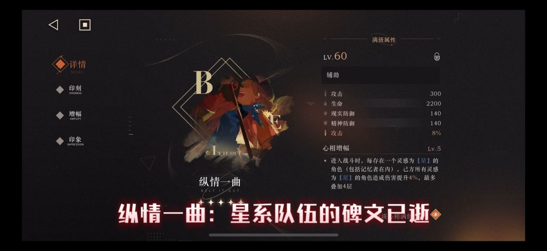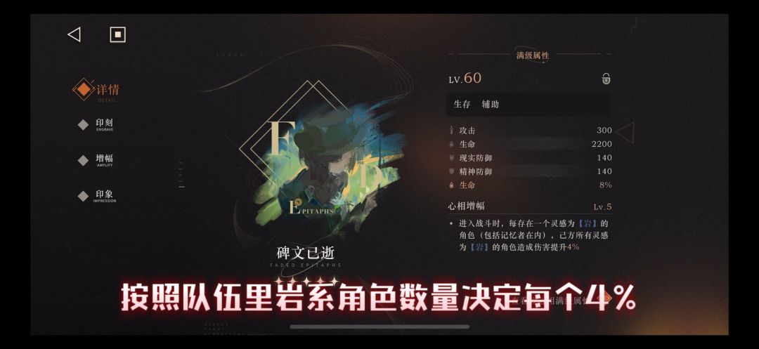 碑文已逝 惊魂搭档 纵情一曲:最高提升全队16%伤害 按队伍中岩/木/星角色数量决定 每个4%