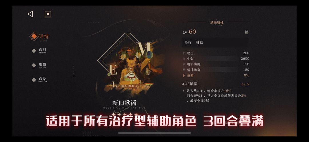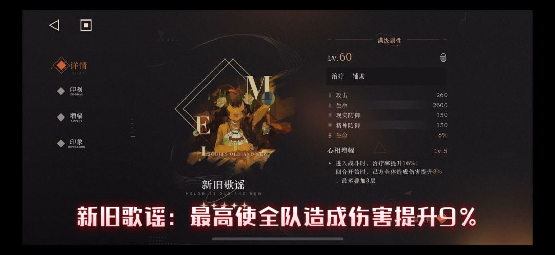 新旧歌谣:最高提升全队9%伤害 适合大部分治疗辅助角色 3回合自动叠满