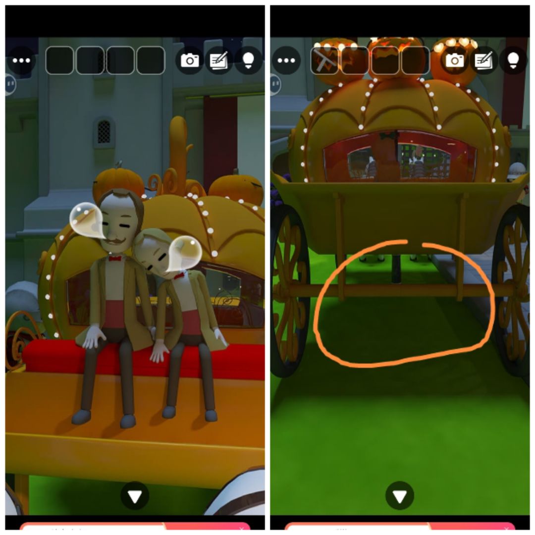 17.将胡萝卜喂给后院的马,露出马车上打呼噜的两个木偶,观察泡泡冒出顺序:双左右左双。