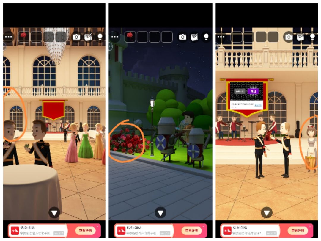 16.点击舞厅左侧,有一个后门可以出去,在后院右侧的花堆里捡一朵玫瑰,将玫瑰戴在舞厅内女仆的发箍上,获得胡萝卜。