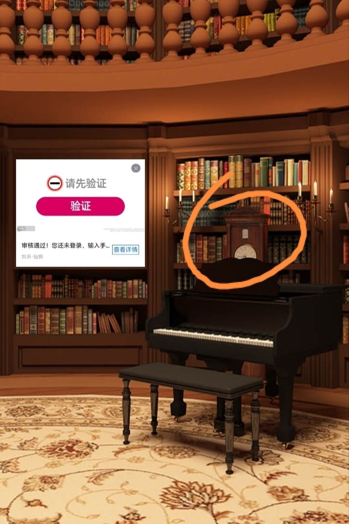 8.点击场景1右侧钢琴,点击座钟,按上分针,获得提灯。