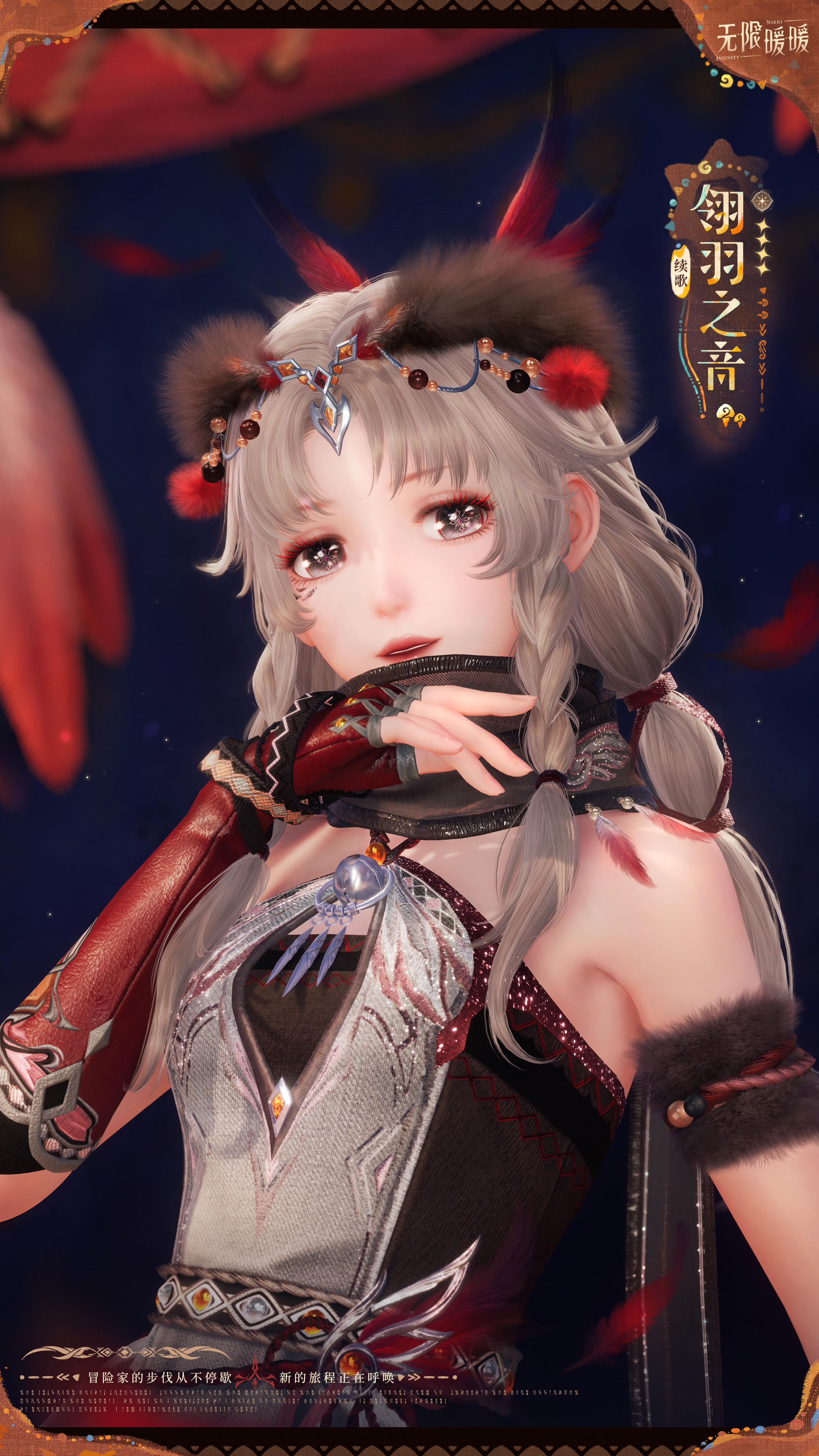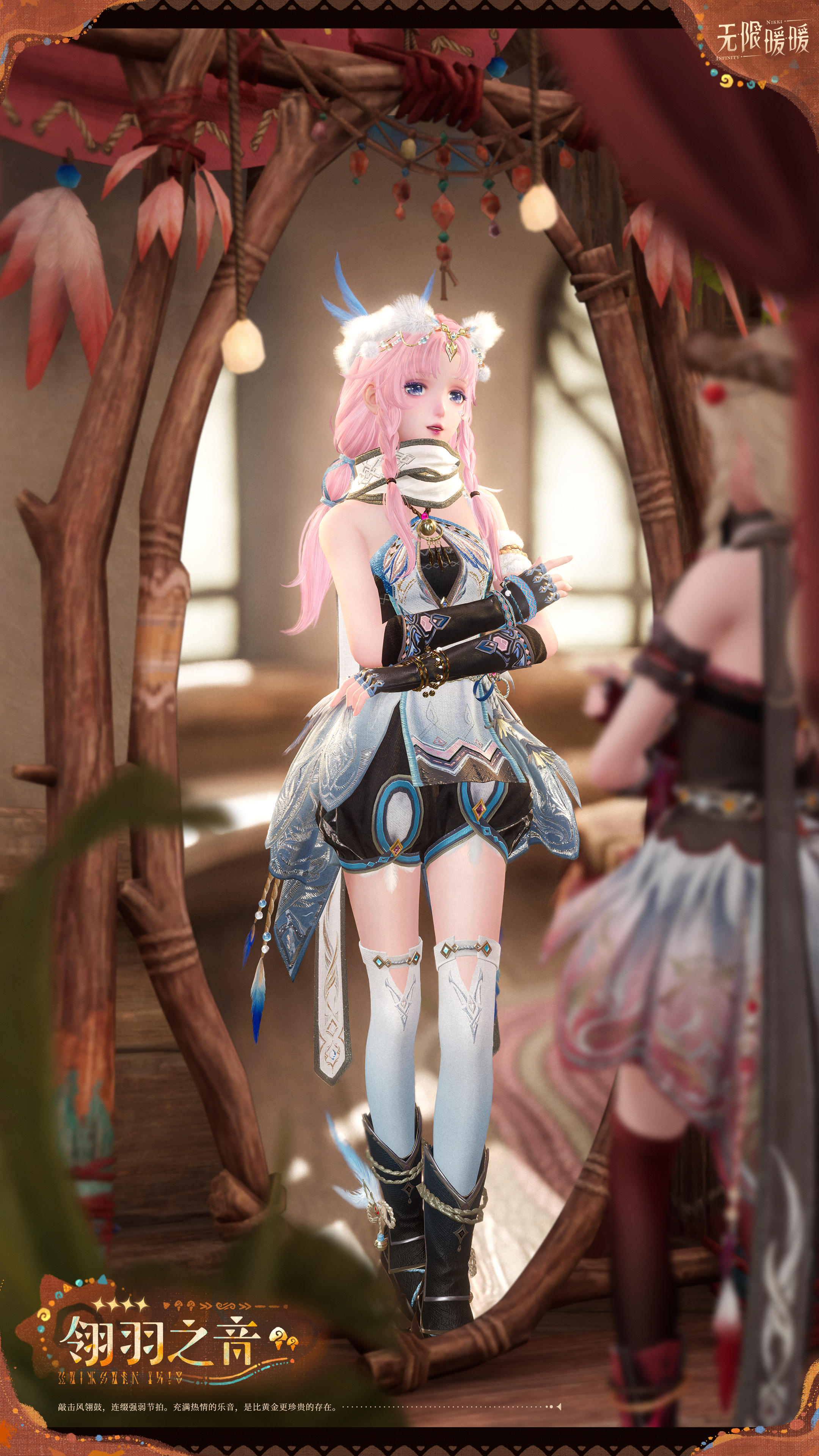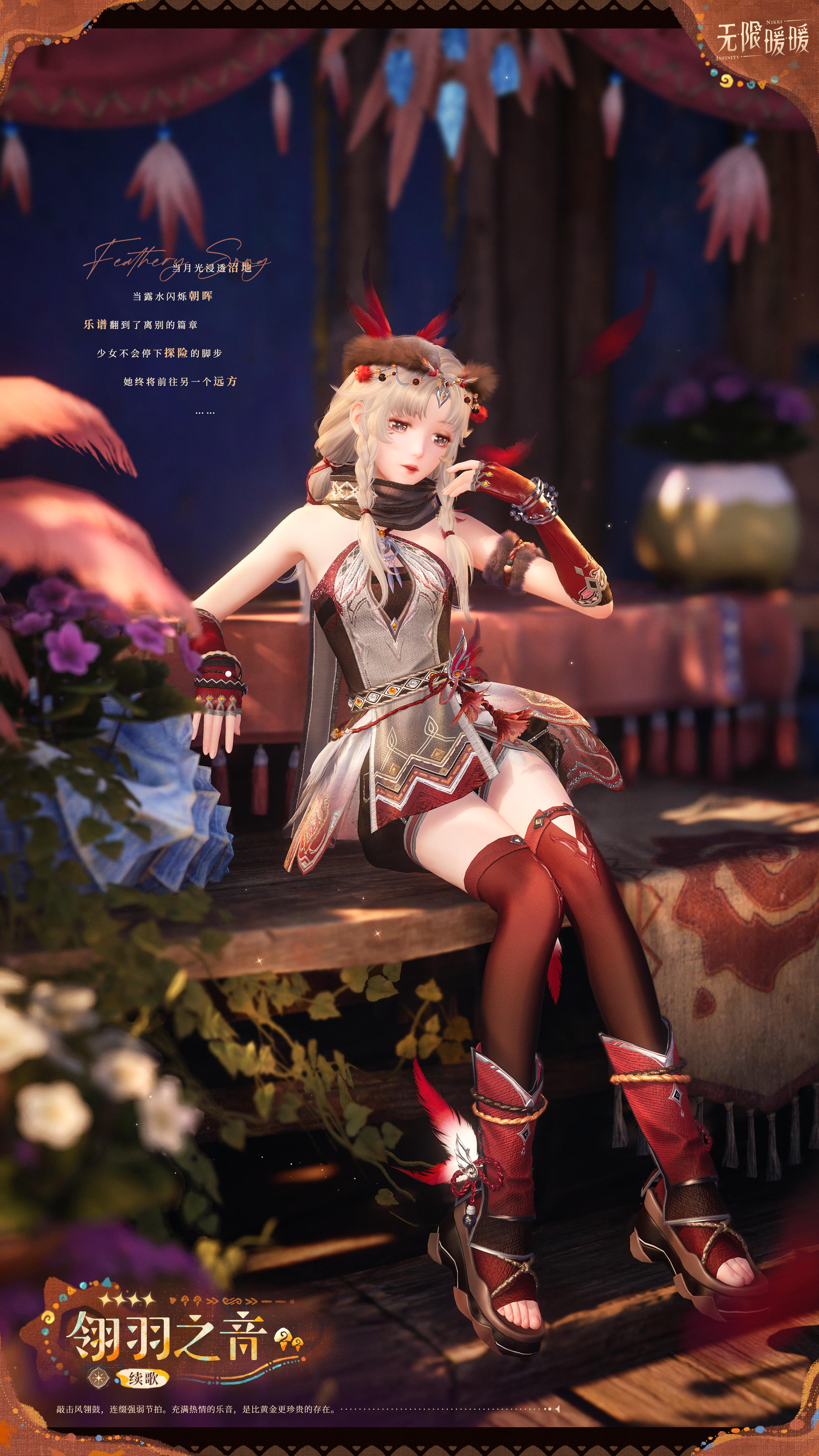「翎羽之音」进化后为套装「翎羽之音·和鸣」。套装焕新完成后可获得「翎羽之音·续歌」。