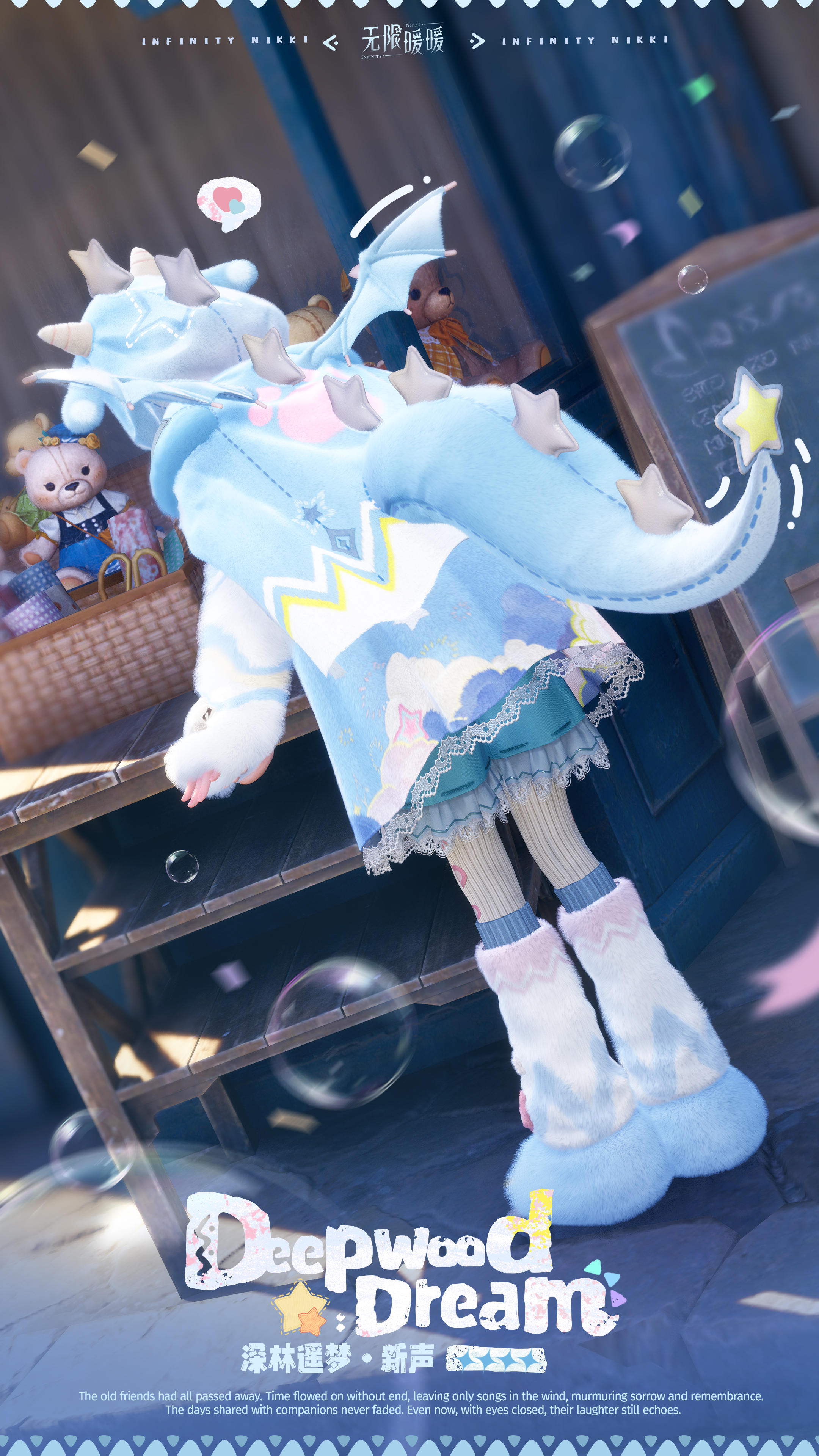 「深林遥梦」进化后为套装「深林遥梦·暮歌」。套装焕新完成后可获得「深林遥梦·新声」。