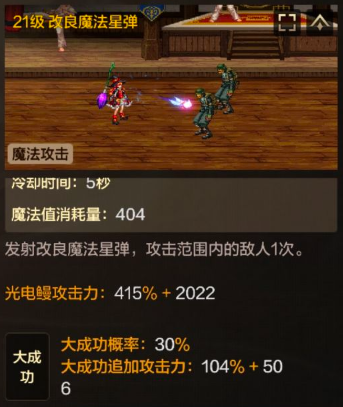 如果是远程敌人可以利用改良魔法星弹y轴起手,或者旋转扫把顶招起手,这俩技能的伤害都算作平推伤害,不影响蓝条,所以也需要点满