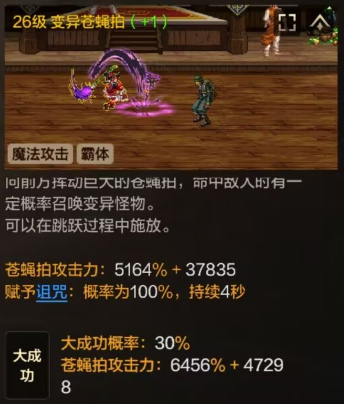变异苍蝇拍是魔道唯一脱颖而出的小技能,它的加点收益应该是魔道所有技能里最高的一个了,但是这个技能也有一个缺点,在释放时会进入短暂的空中状态,在这短暂的时间里,是没办法释放闪避的,如果魔道释放苍蝇拍的同时boss正好进行攻击,就没办法进行躲避了,所以释放时机需要注意下
