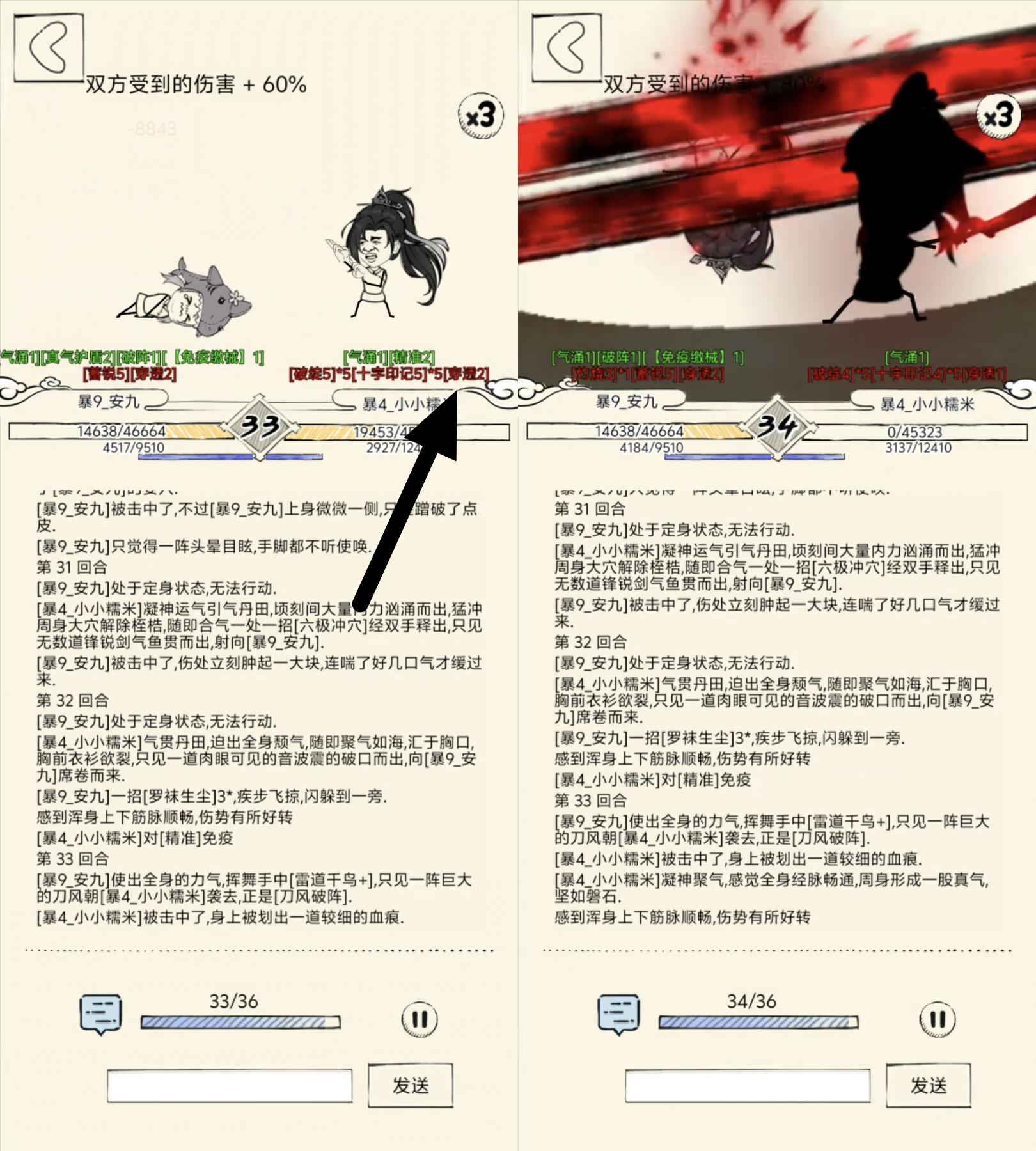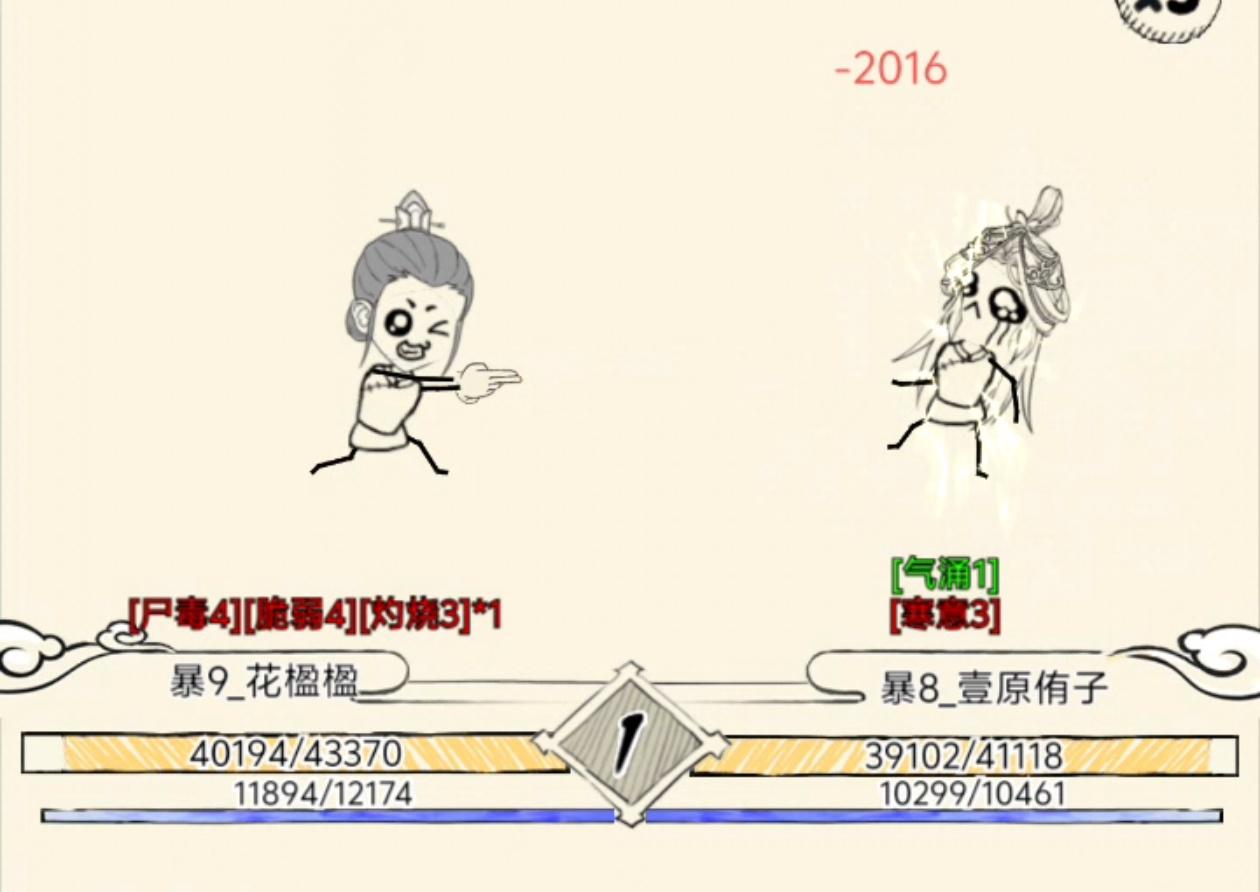 ↘点评:洗髓内战,十字刀的时机把握得非常好,虽然可能也有运气成分。在增伤的状态下,刚好触发破敌,为对方附加了2回合的穿透,然后紧接着,抓住60%的增伤直接把还有将近一半血量的小小糯米给秒了,时机把握真的非常非常到位。半血斩杀!