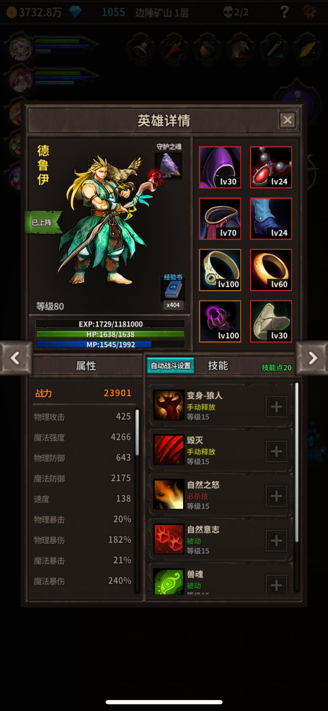 6-守护:德鲁伊-雷鸟,必备!其余白蛇或4雷鸟1白蛇,必备技能-积极!